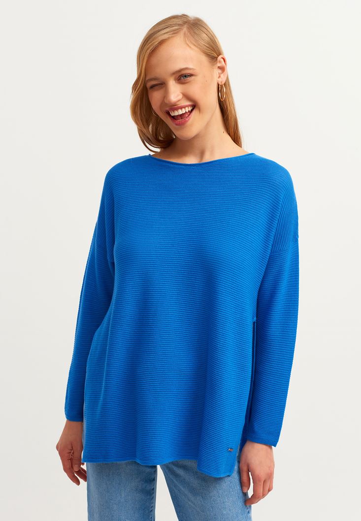 • Bayan Mavi Oversize Triko Kazak ( TENCEL™ )