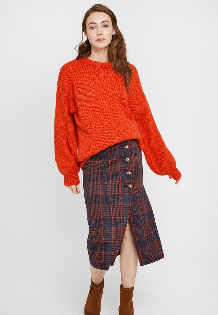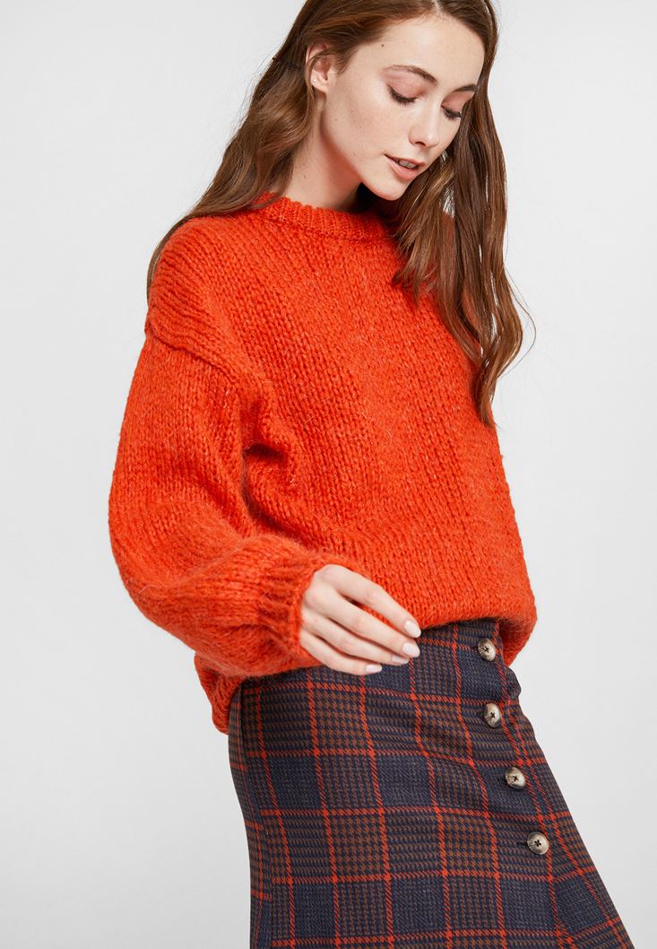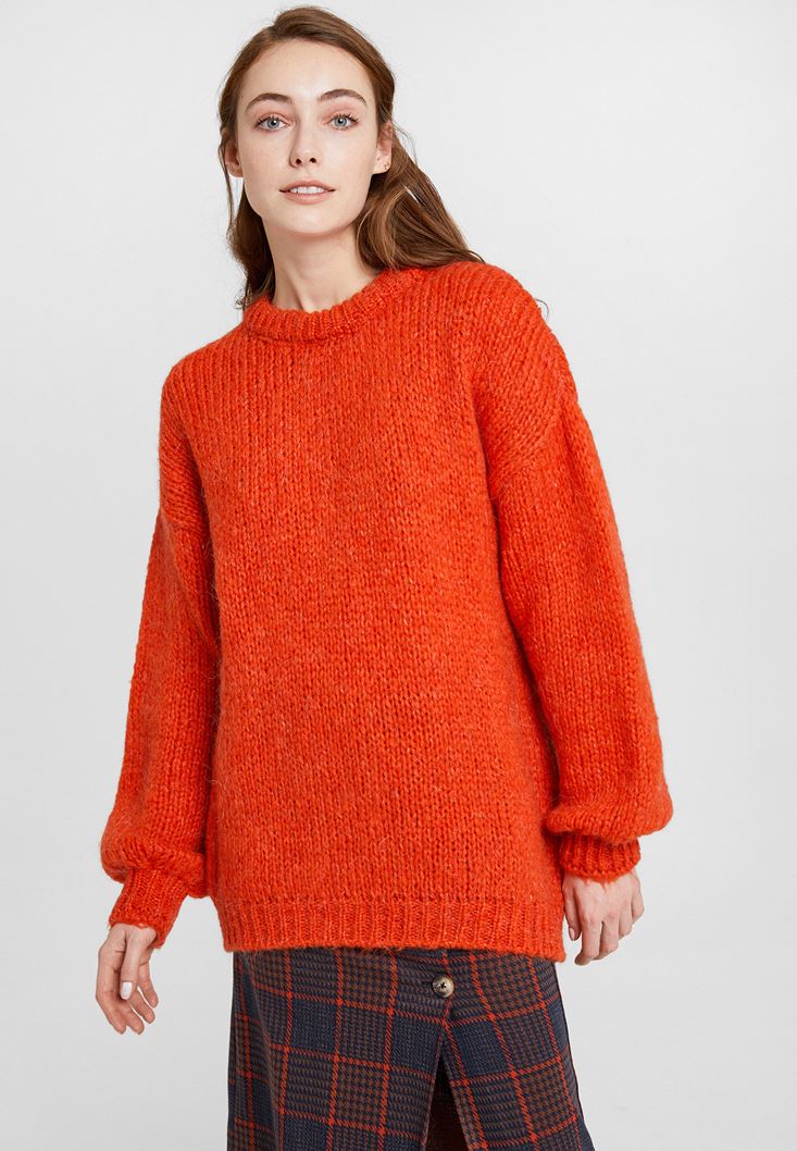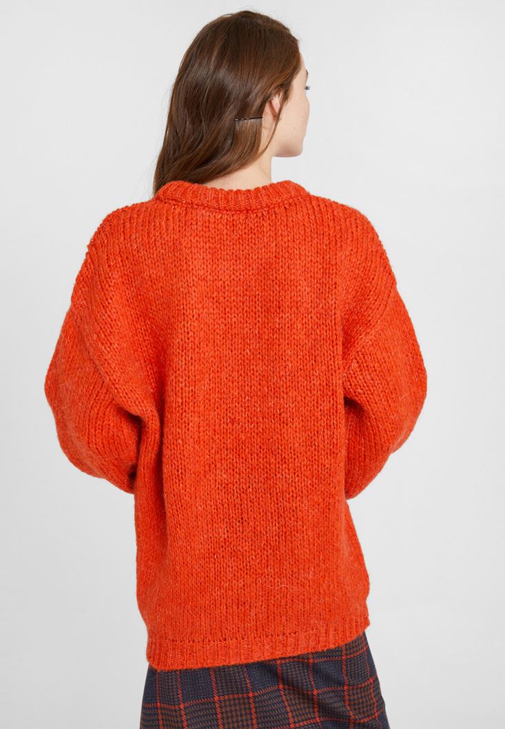 Turuncu Oversize Triko Kazak