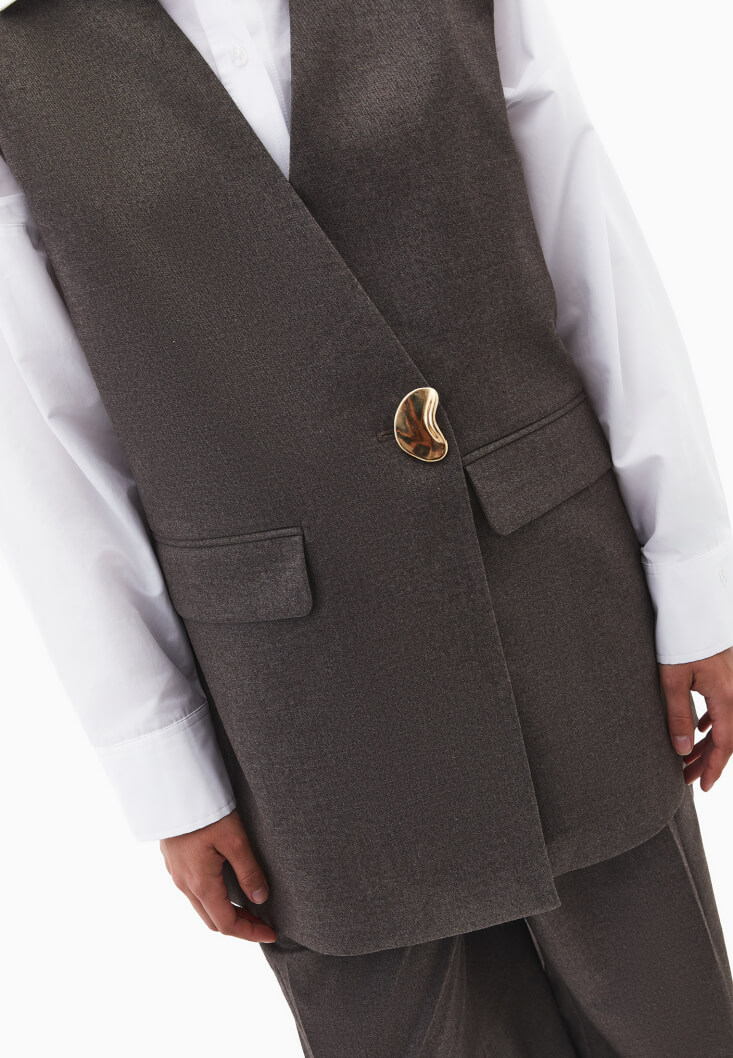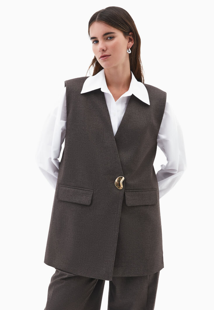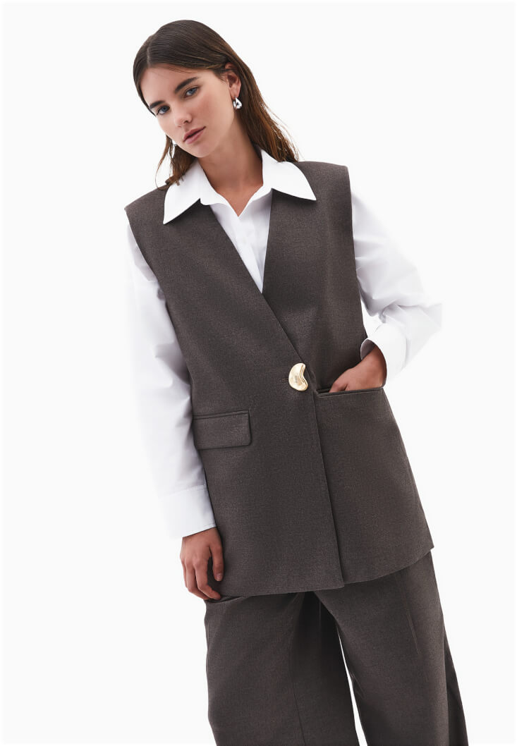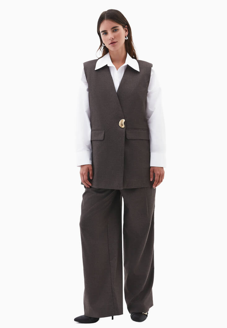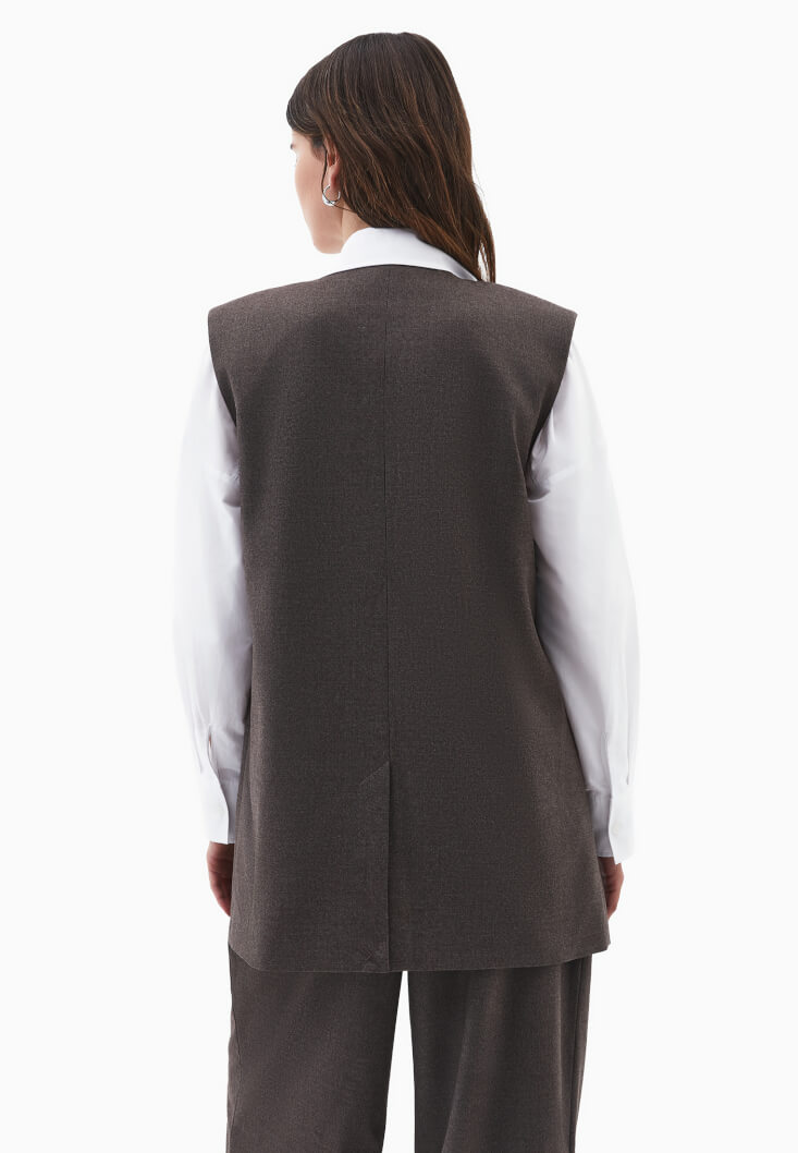 • Bayan Kahverengi Oversize V Yaka Yelek