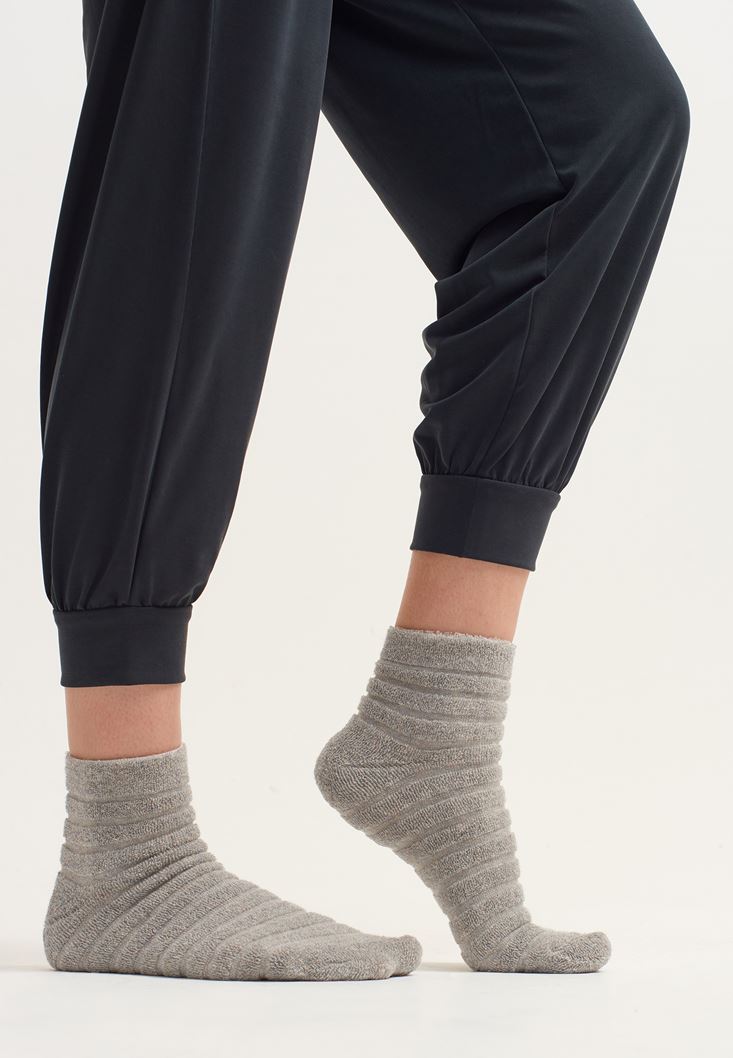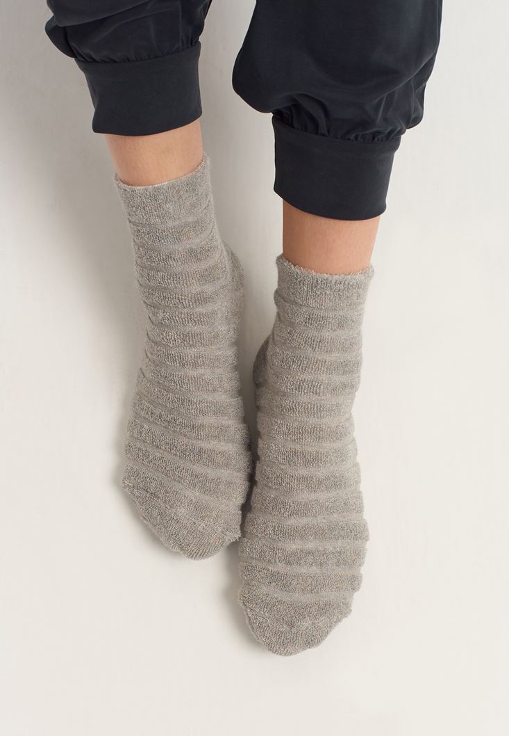 Gri Özel Parfümlü ve Dokulu Ankle Çorap