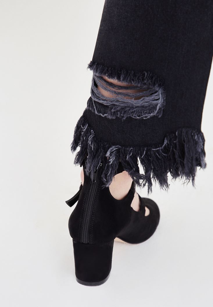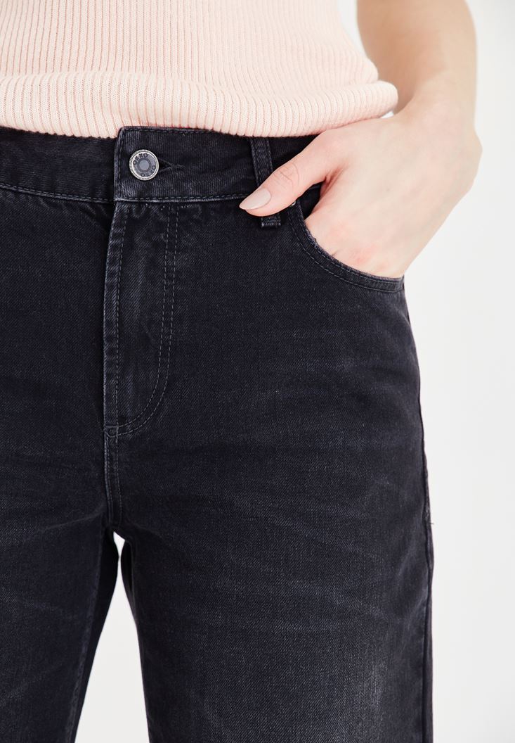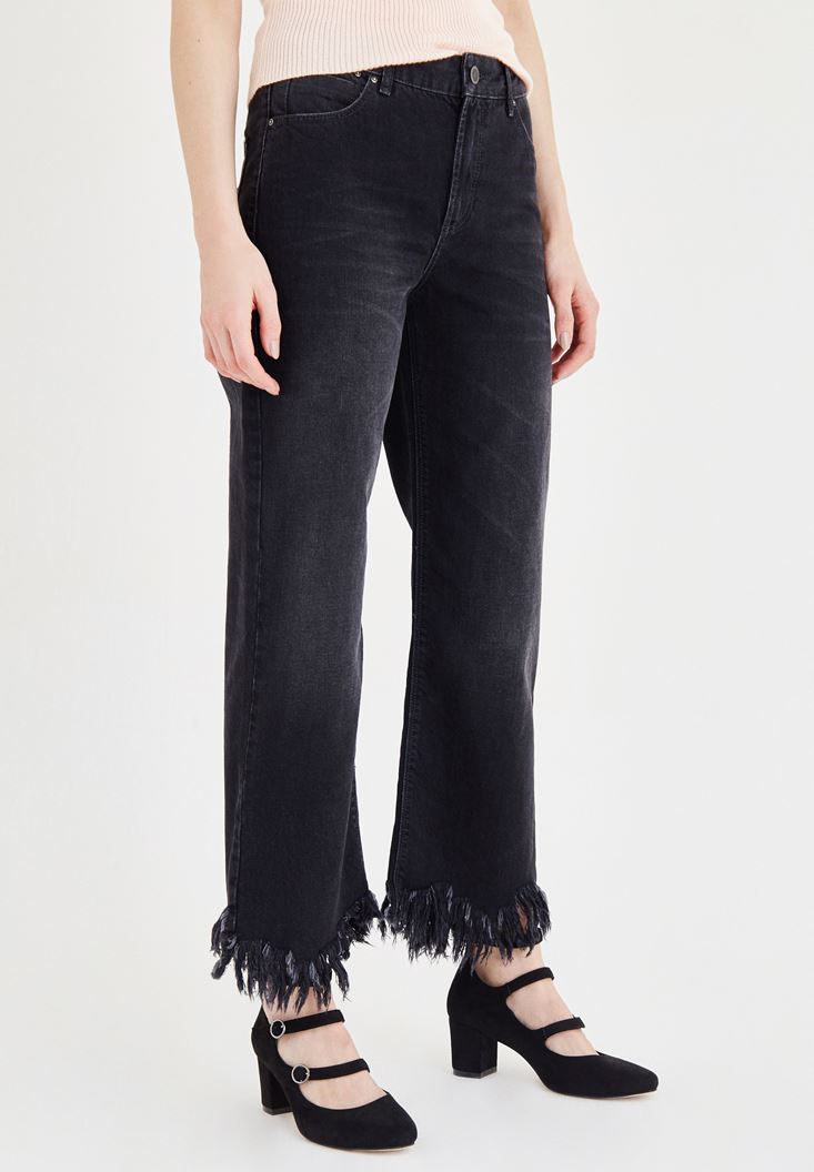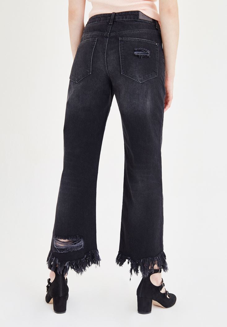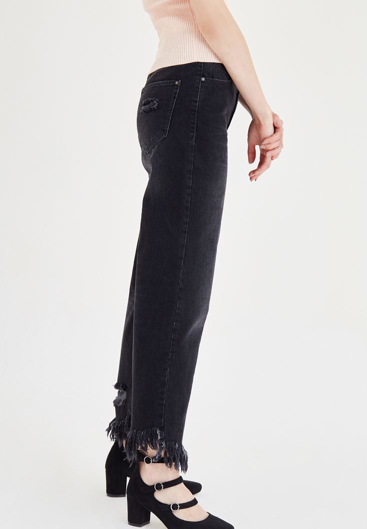 • Bayan Siyah Paça Detaylı Bol Kesim Jean Pantolon