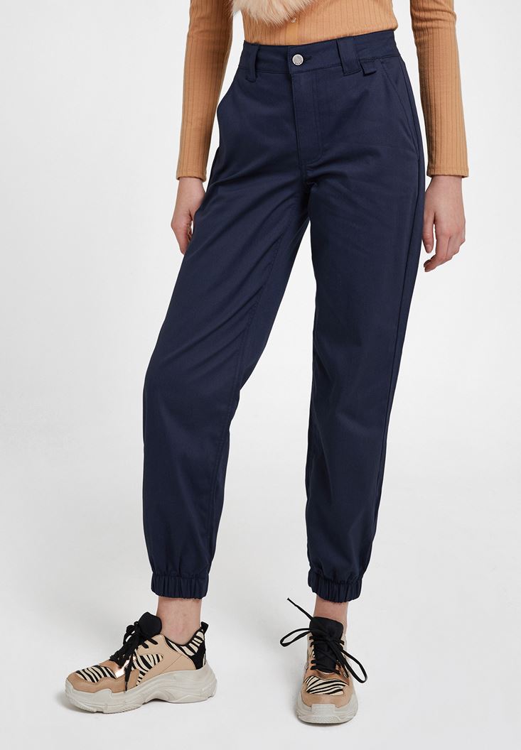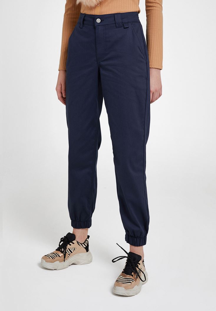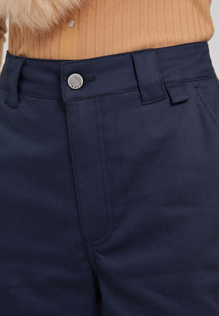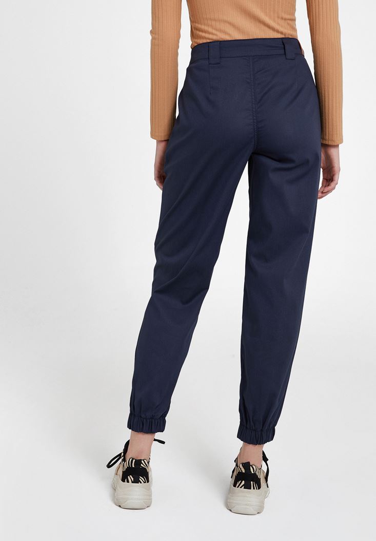 Lacivert Paça Detaylı Cepli Bol Pantolon
