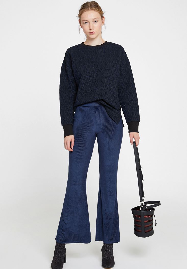• Bayan Lacivert Paça Detaylı Kadife Pantolon