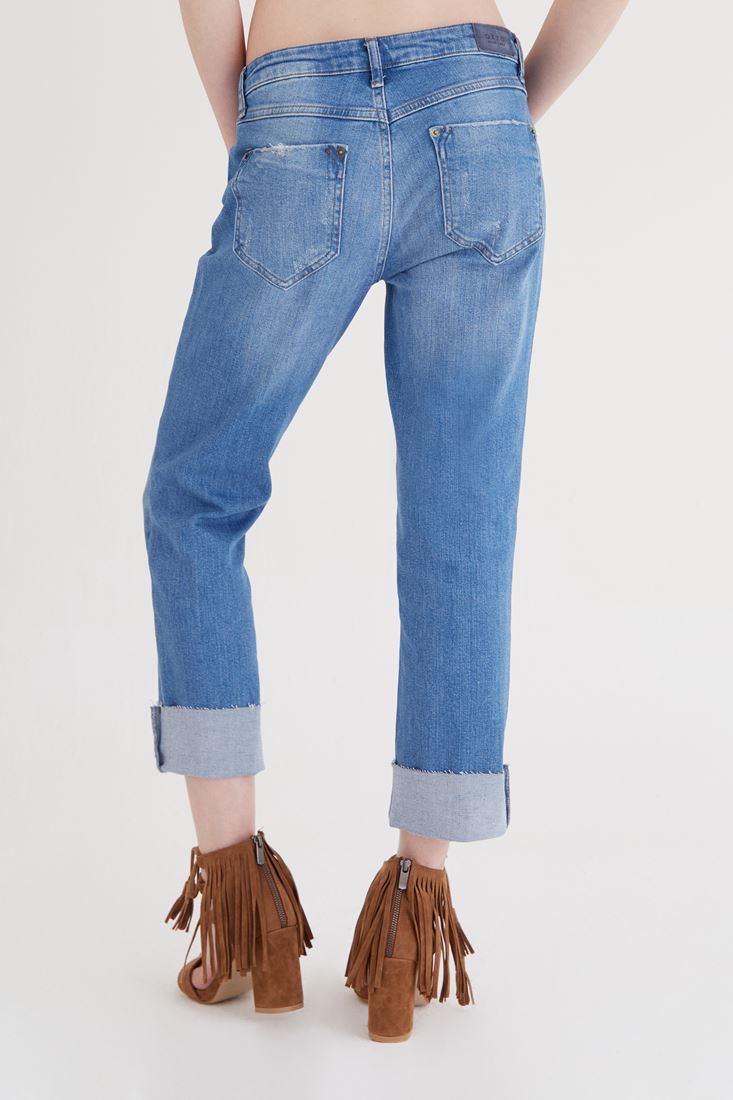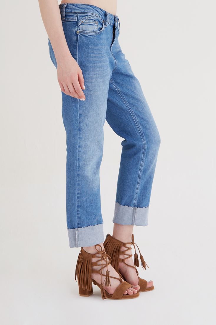 • Bayan Mavi Paça Detaylı Kot Pantolon