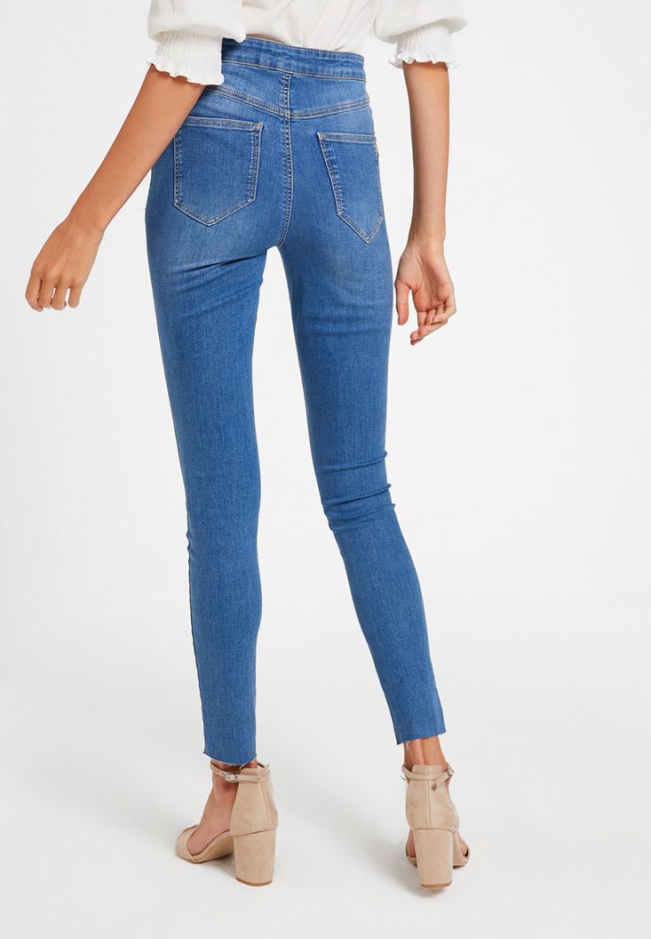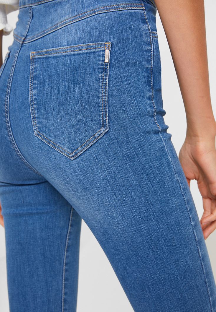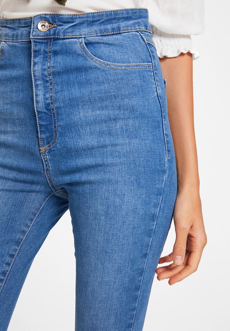 Mavi Paça Detaylı Ultra Yüksel Bel Denim Pantolon