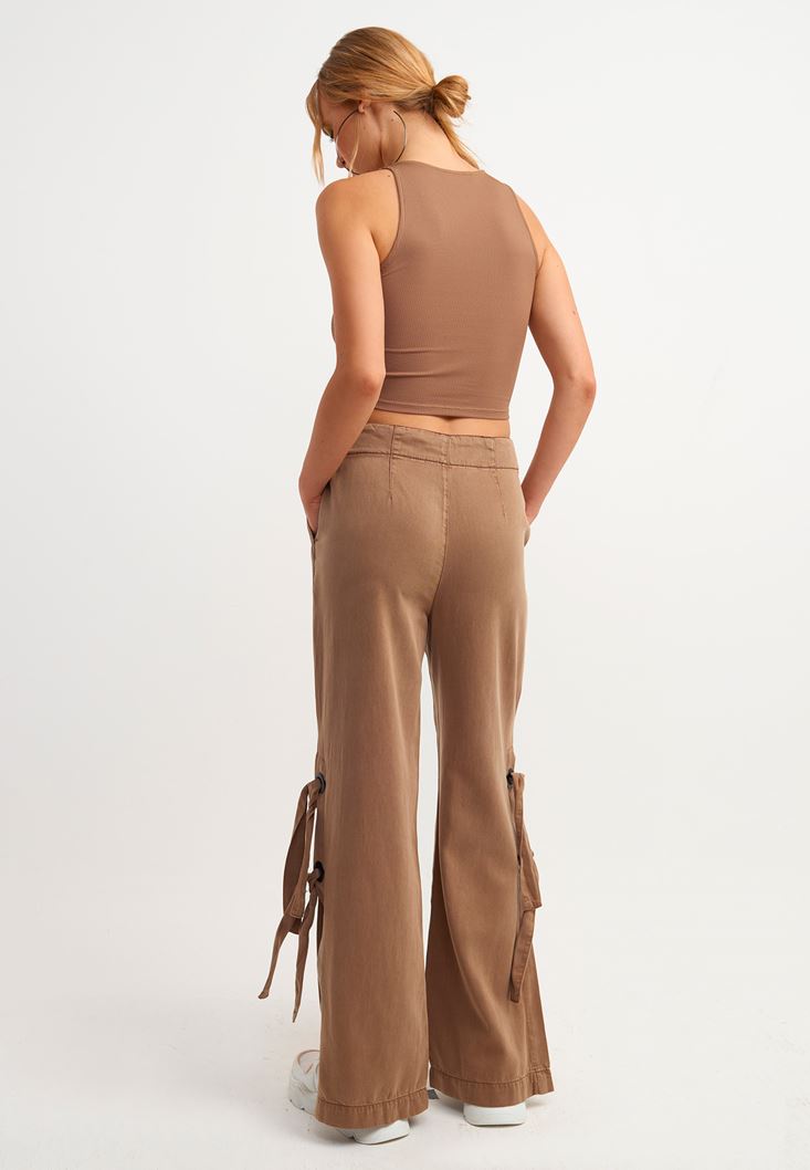 • Bayan Kahverengi Paça Detaylı Wide-Leg Pantolon ( TENCEL™ )