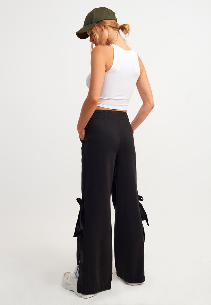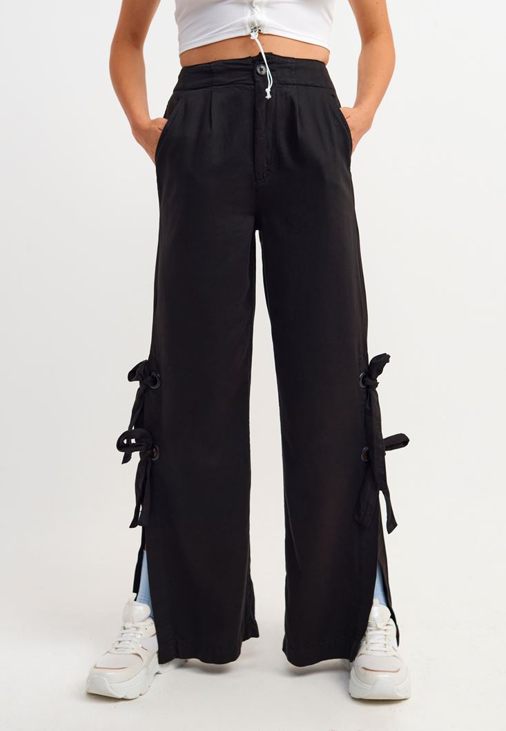 • Bayan Siyah Paça Detaylı Wide-Leg Pantolon ( TENCEL™ )