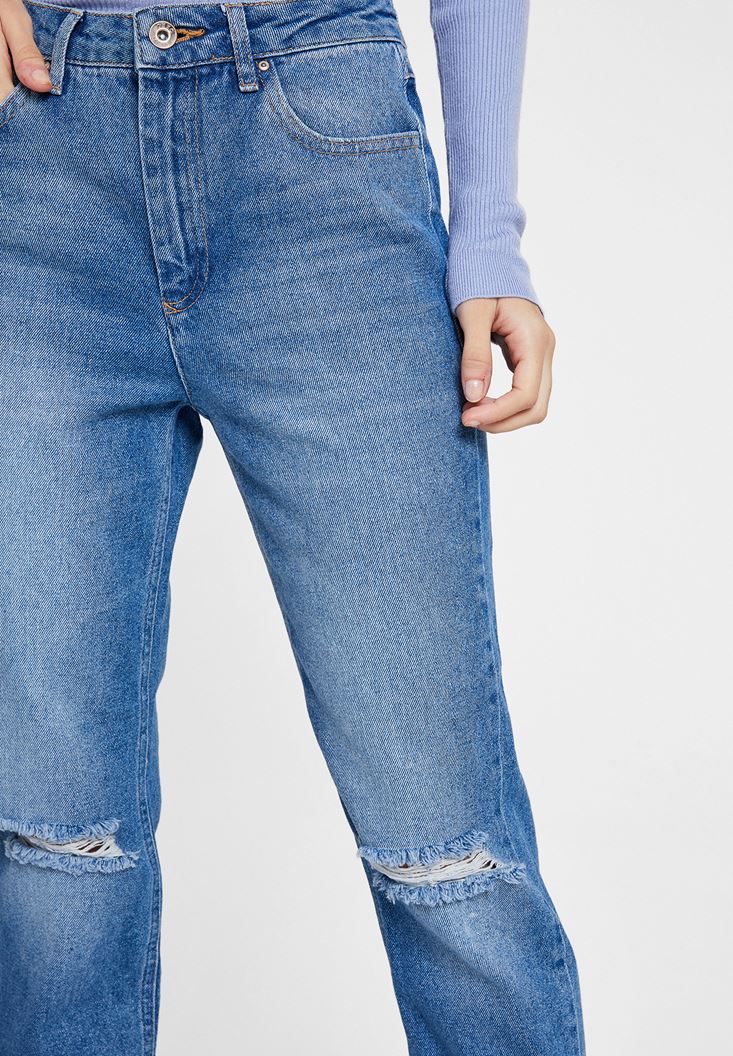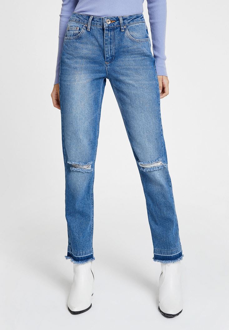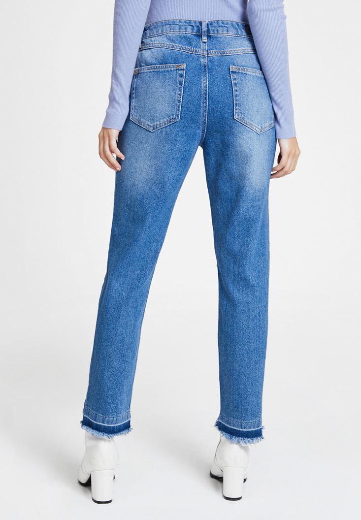 • Bayan Mavi Paça Detaylı Yüksek Bel Denim