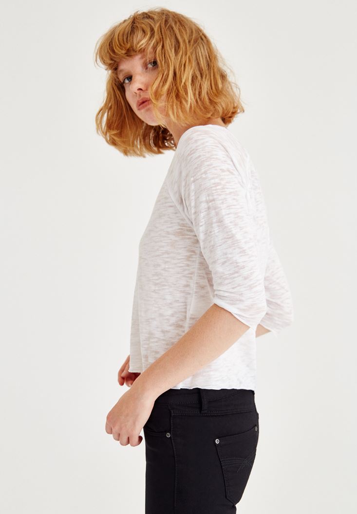 Son dönemlerin en popüler bluz kesimi olan crop top kesimden ilham olan pamuk tisört hem kesimi hem de dokusu ile dikkatinizi çekecek. Yarim kollu ve genis bisiklet yakali tisört modeli ile birbirinden farkli ve sik kombinler yapabilirsiniz. Yogun pamuk dokusu ile oldukça yumusak ve konforlu bir kullanim imkani sunan tisört modeli kumasinin kendinden sahip oldugu doku detaylari oldukça farkli bir görüntü sunuyor. Pamuk ayrica yüksek nem emici özelligi ile kiyafetler için saglikli ve konforlu bir seçim olarak öne çikarken bu tisörte de özelliklerini basarili bir sekilde aktariyor. OXXO’nun sira disi ve dikkat çeken tasarimlari tarzinizi her zaman basarili bir sekilde olusturmanizin yani sira her daim konforlu ve özgür hissetmenizi sagliyor.