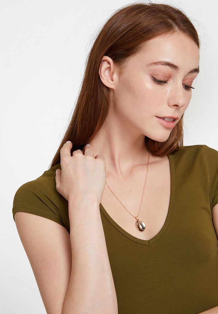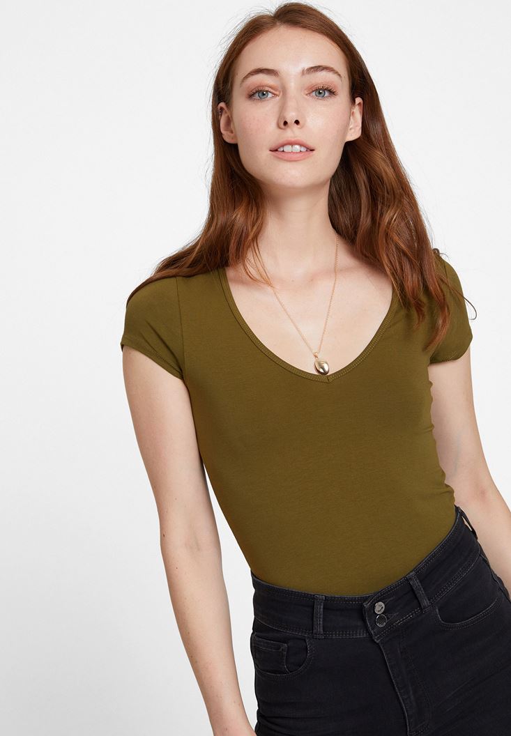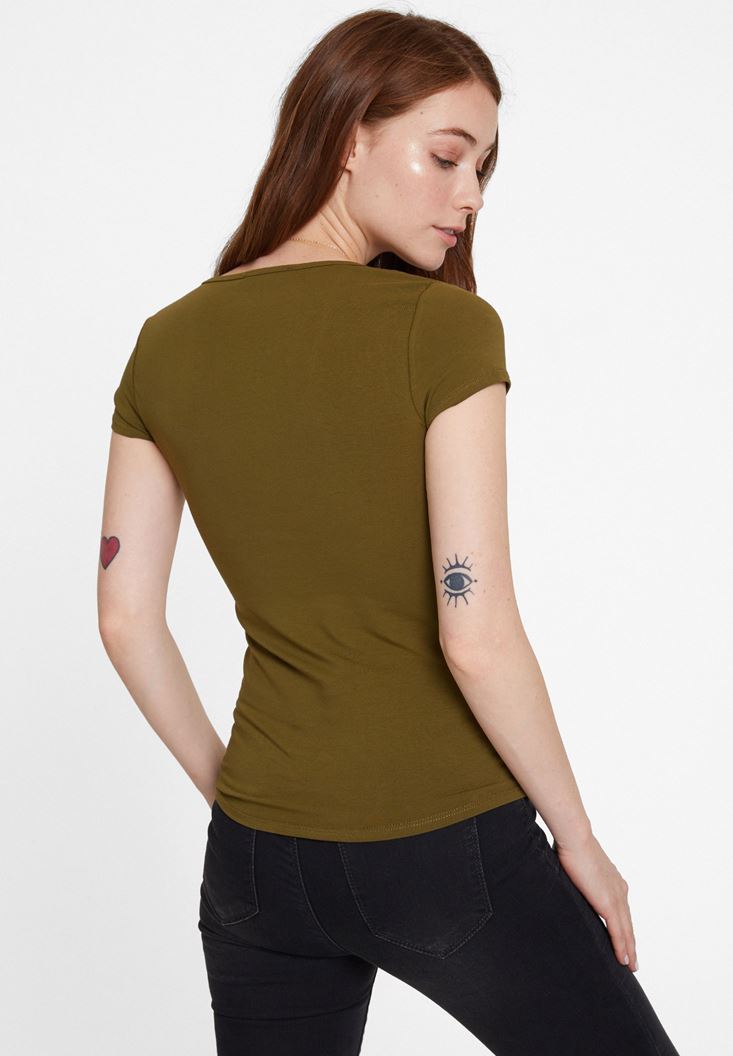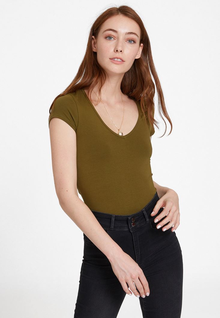 • Bayan Yeşil Pamuk V Yaka Kısa Kollu Tişört