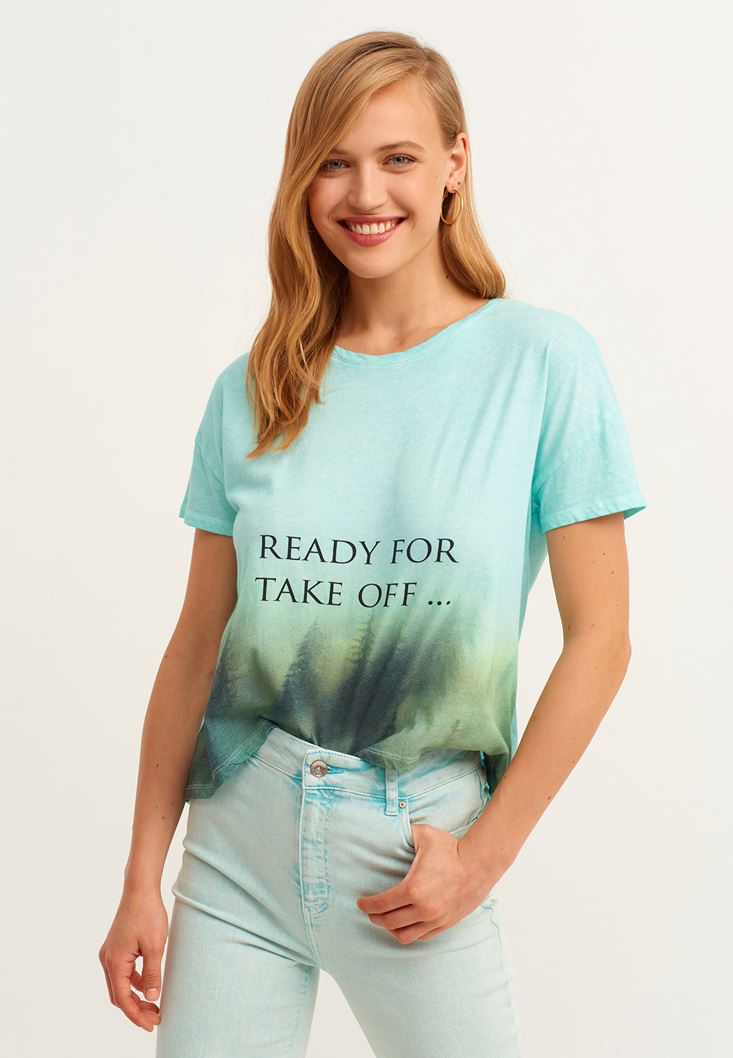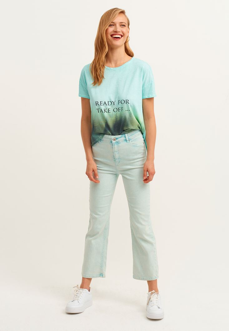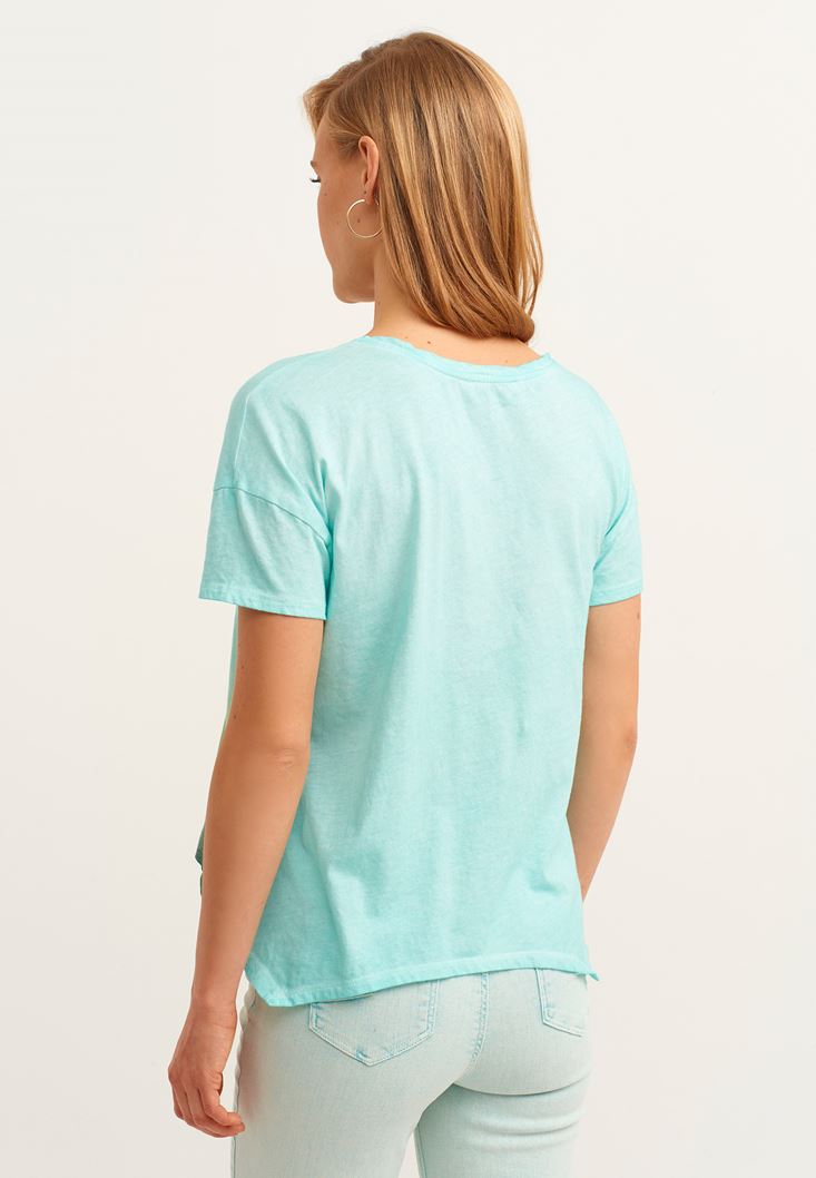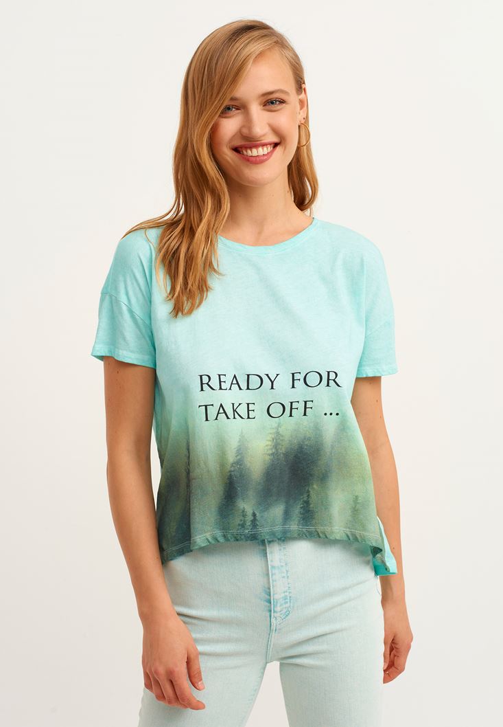 • Bayan Mavi Pamuklu Asimetrik Crop Tişört