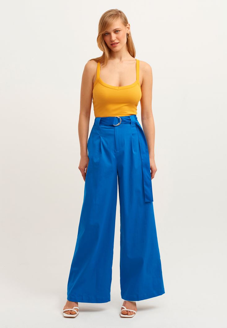 Pamuk karışımlı özel doku, V yaka form, kalın askılı, sırt kısmında yakınlaşan askı birleşimi, bedeni saran esnek kalıp.