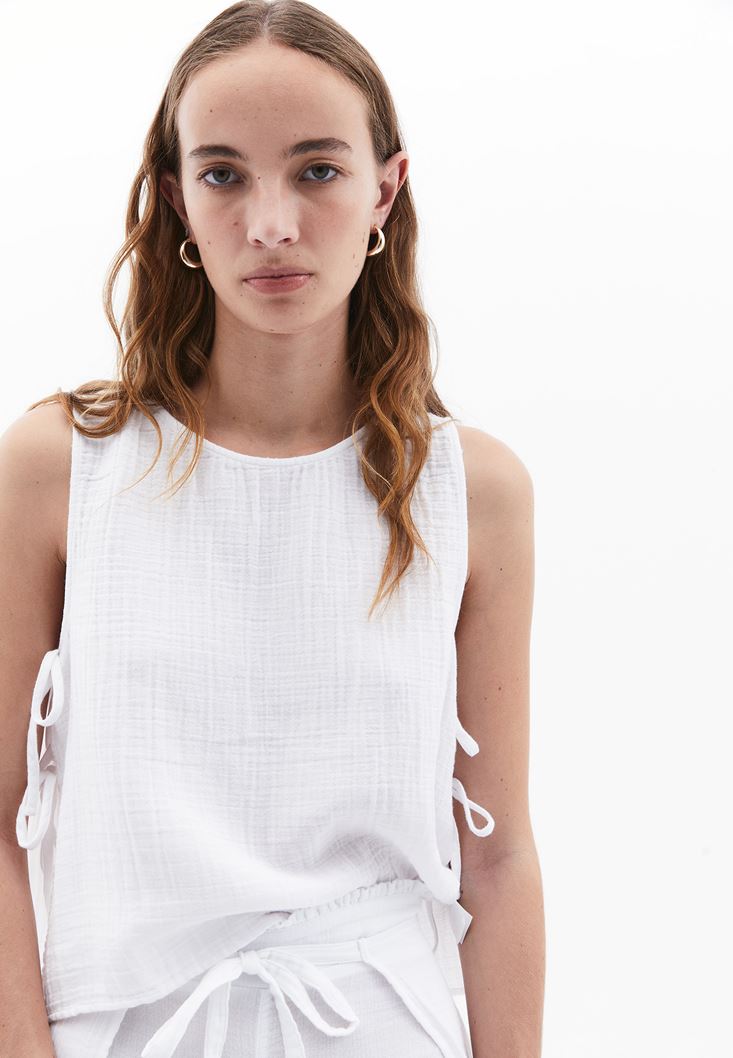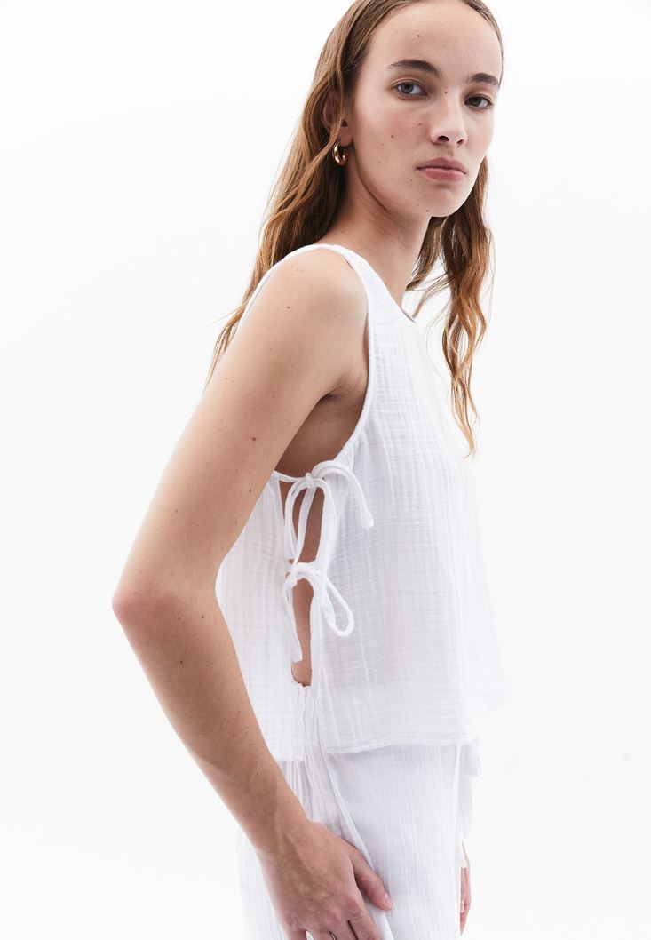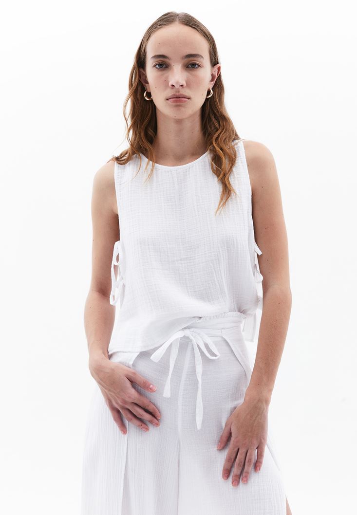 %100 pamuklu doğal içerik, yan kısımları bağlama detaylı, bedenden uzak loose fit, yuvarlak yaka.