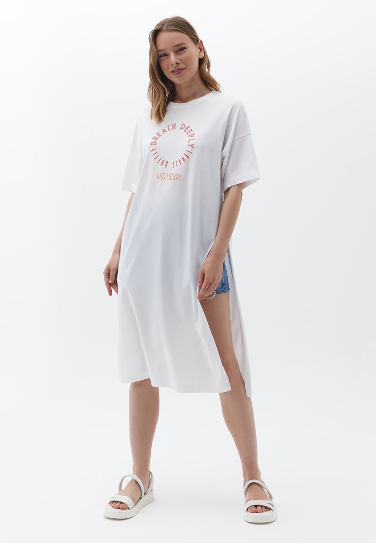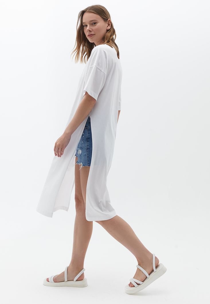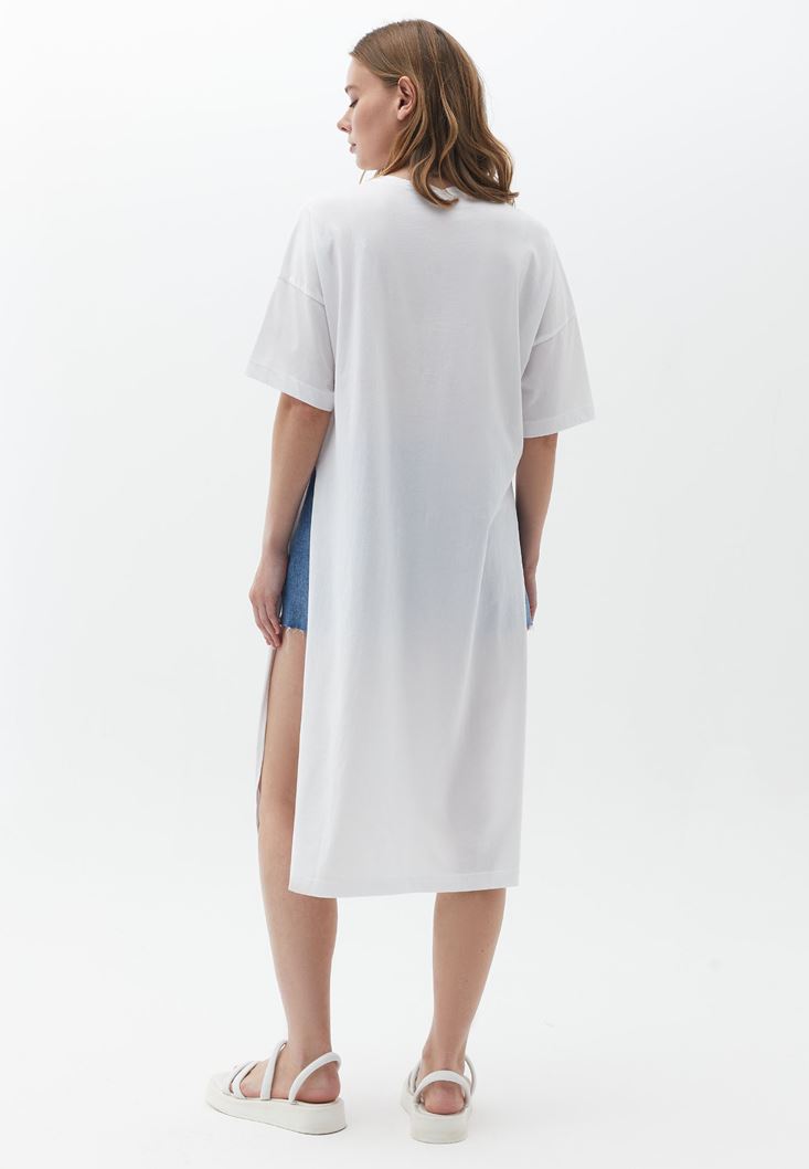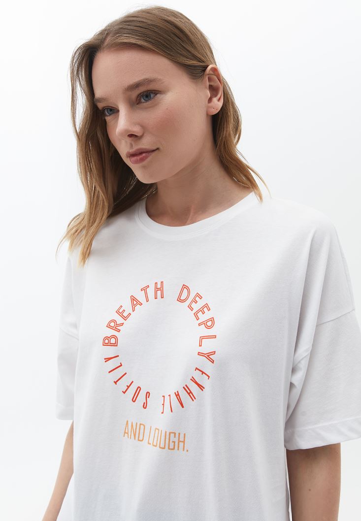 Beyaz Pamuklu Baskılı Tişört