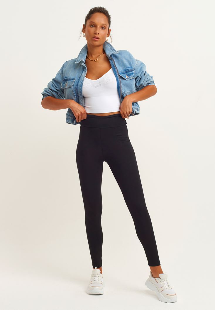 • Bayan Siyah Pamuklu Bel Detaylı Tayt