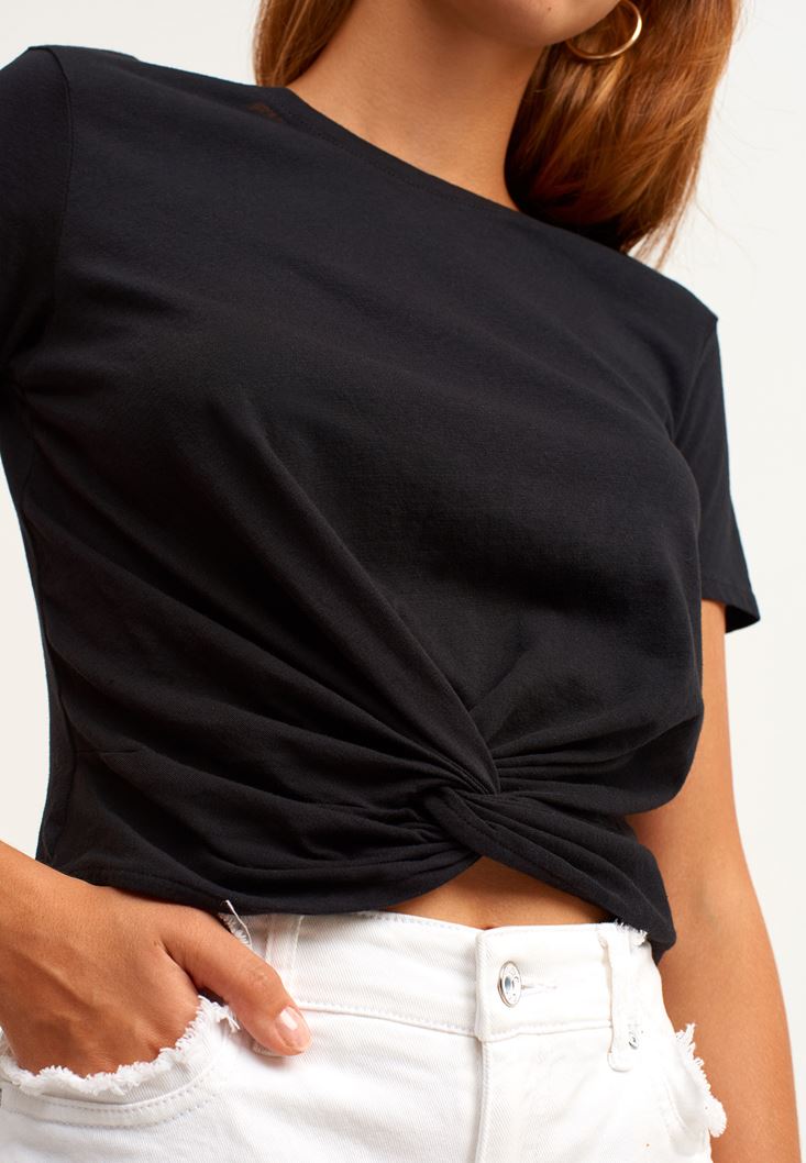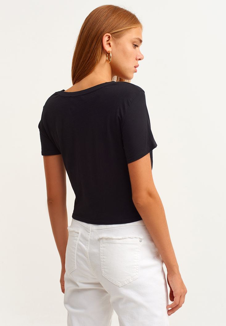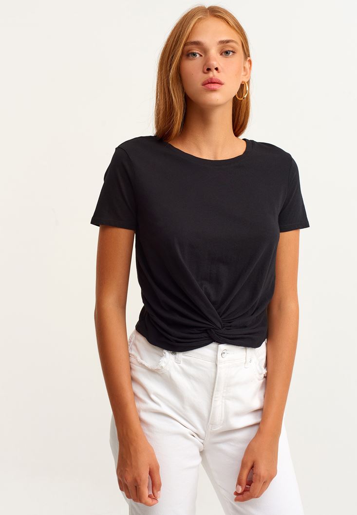 • Bayan Siyah Pamuklu Beli Burgulu Tişört