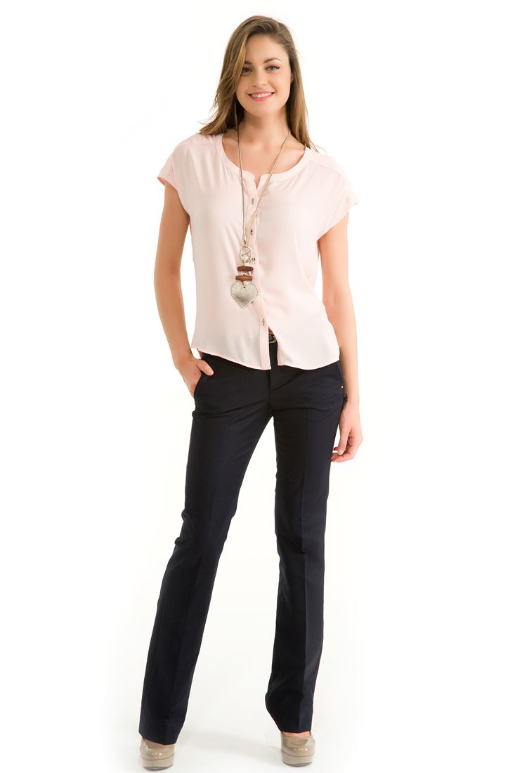 • Bayan Lacivert Pamuklu Bol Paça Pantolon