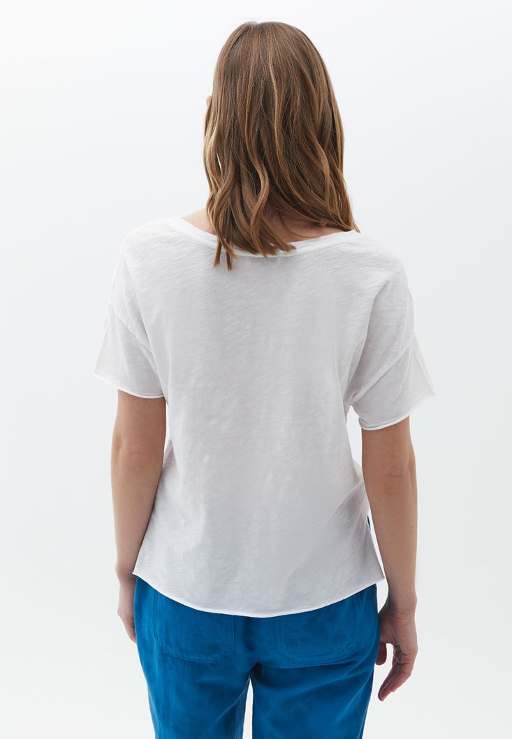 • Bayan Beyaz Pamuklu Bot Yaka Tişört