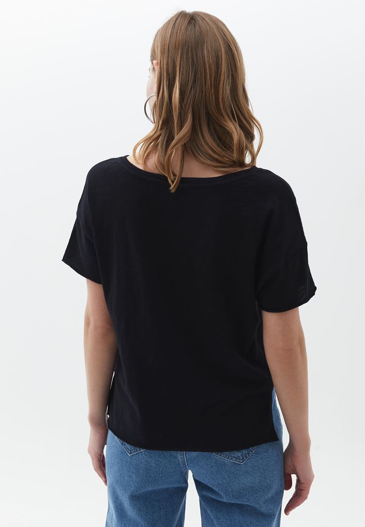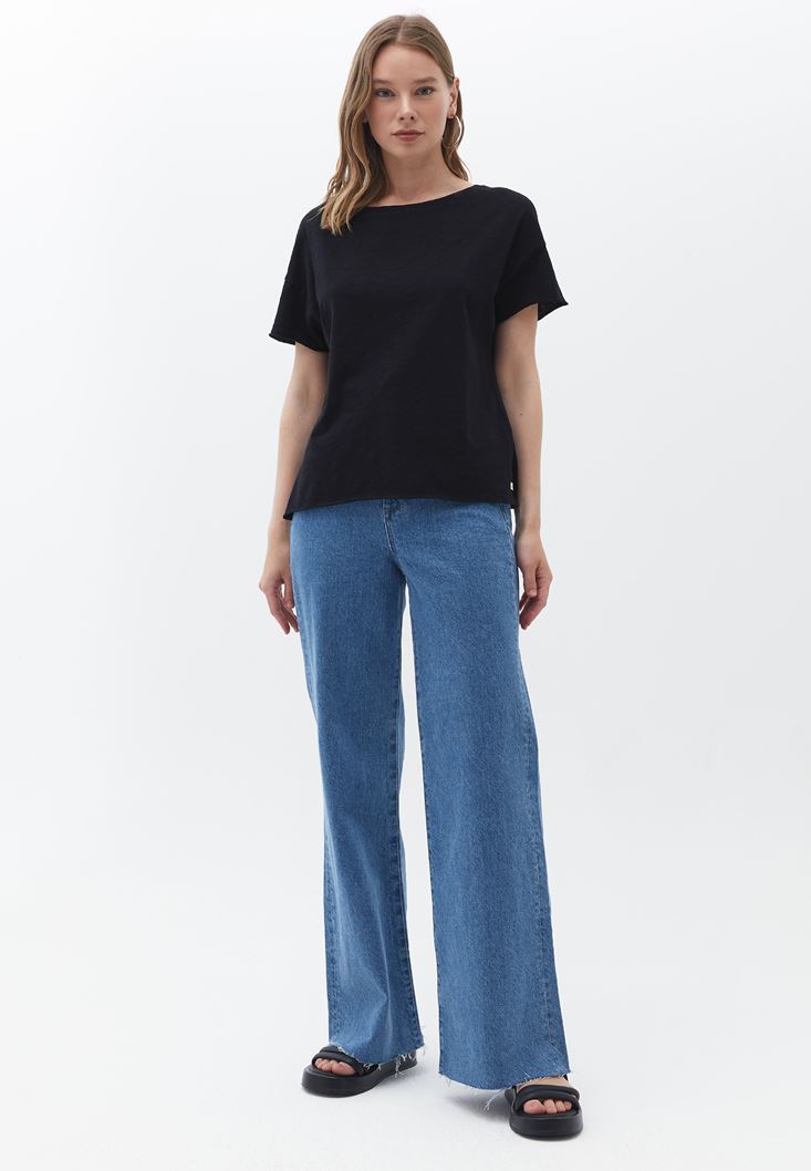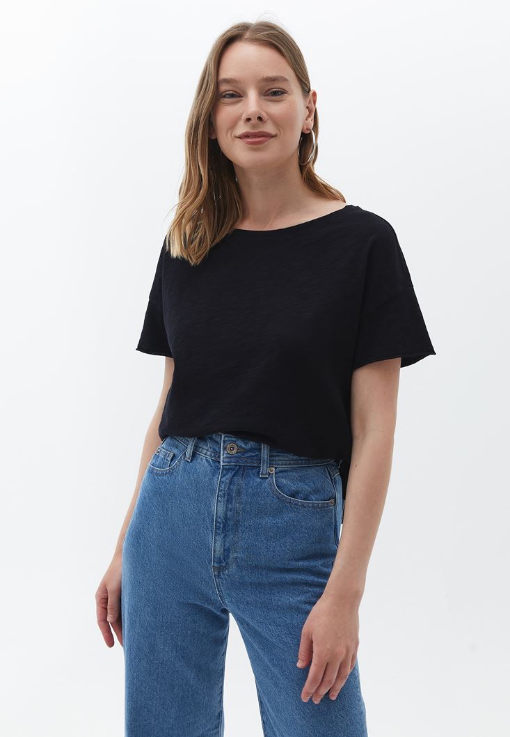 • Bayan Siyah Pamuklu Bot Yaka Tişört