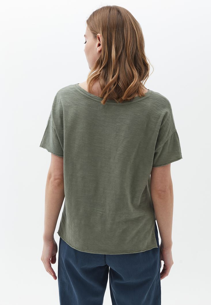• Bayan Yeşil Pamuklu Bot Yaka Tişört