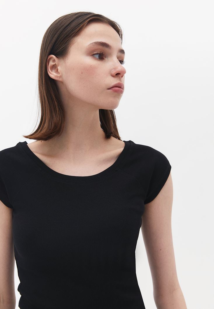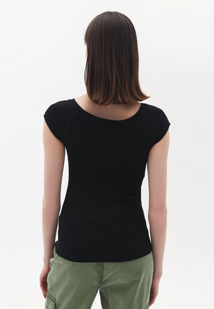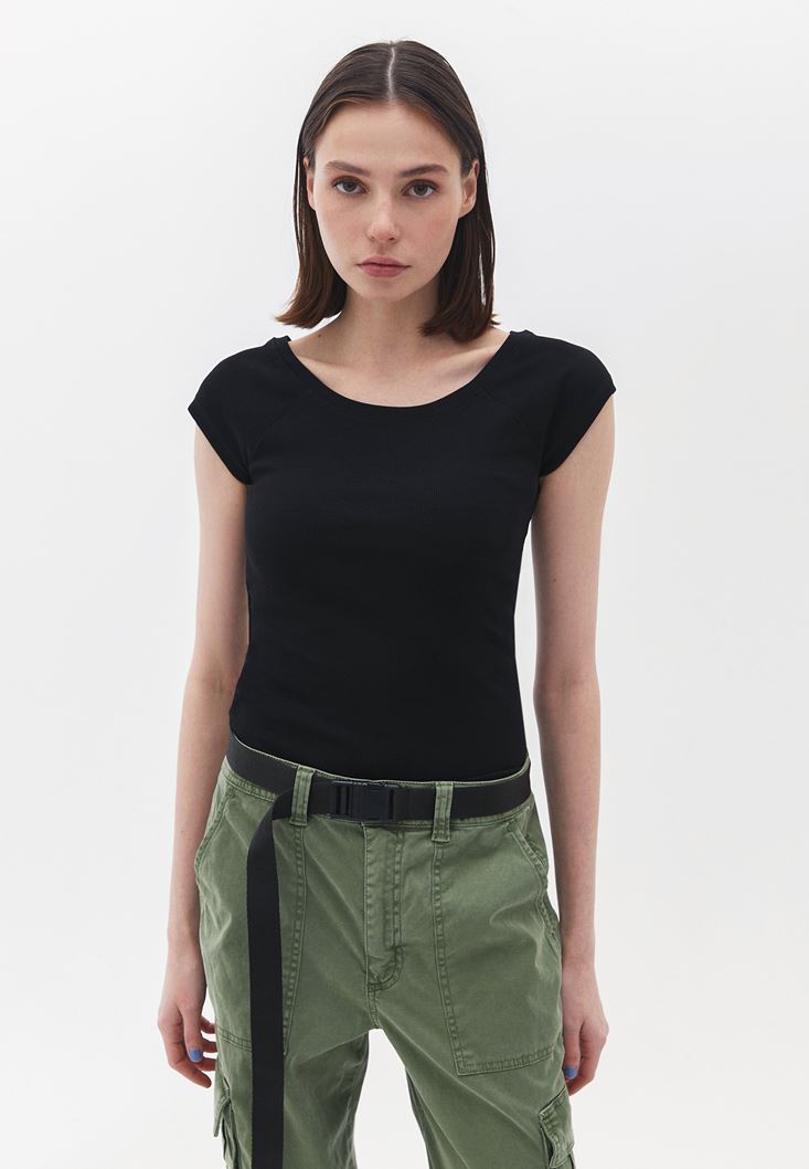 • Bayan Siyah Pamuklu Bot Yaka Tişört
