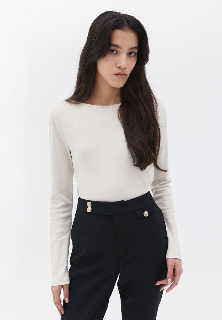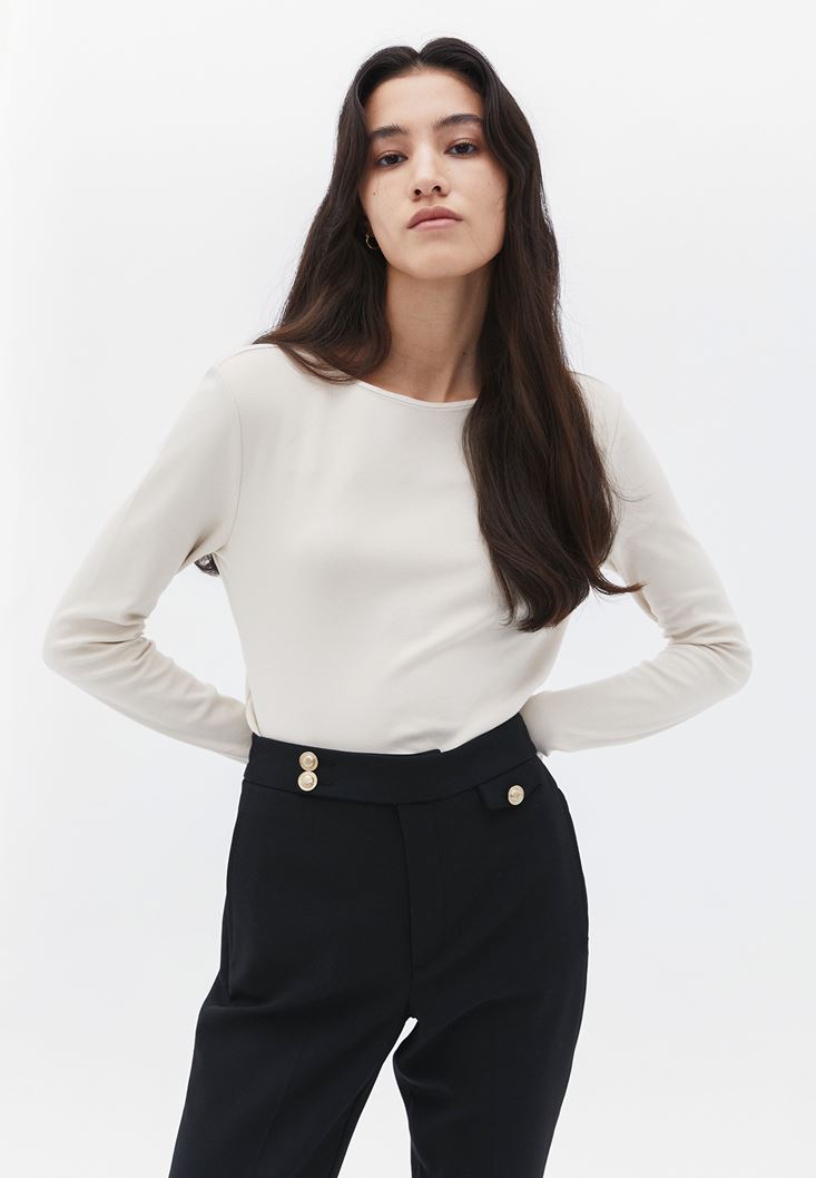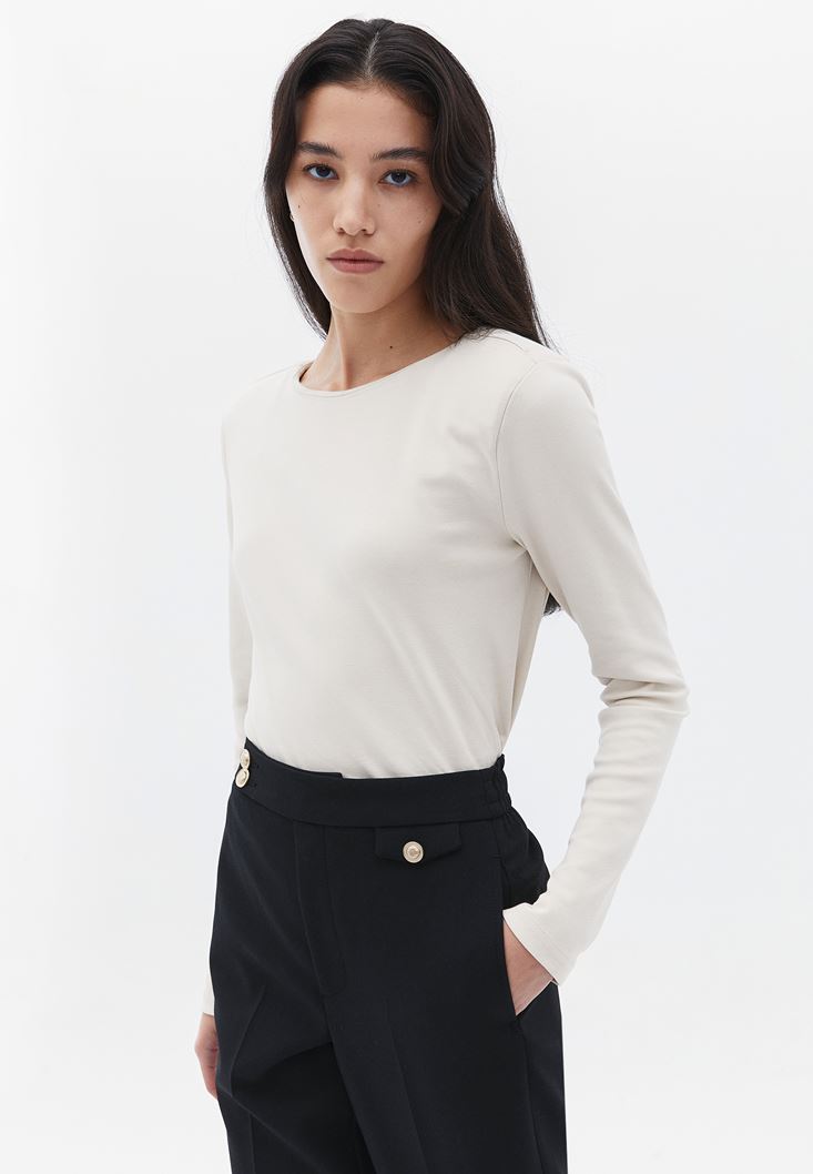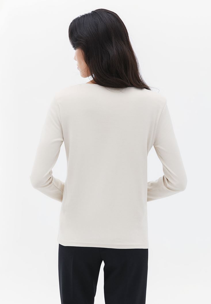 %100 pamuk içerikli doğal doku, bedene yakın rahat fit, uzun kollu, kayık yaka, standart boy.