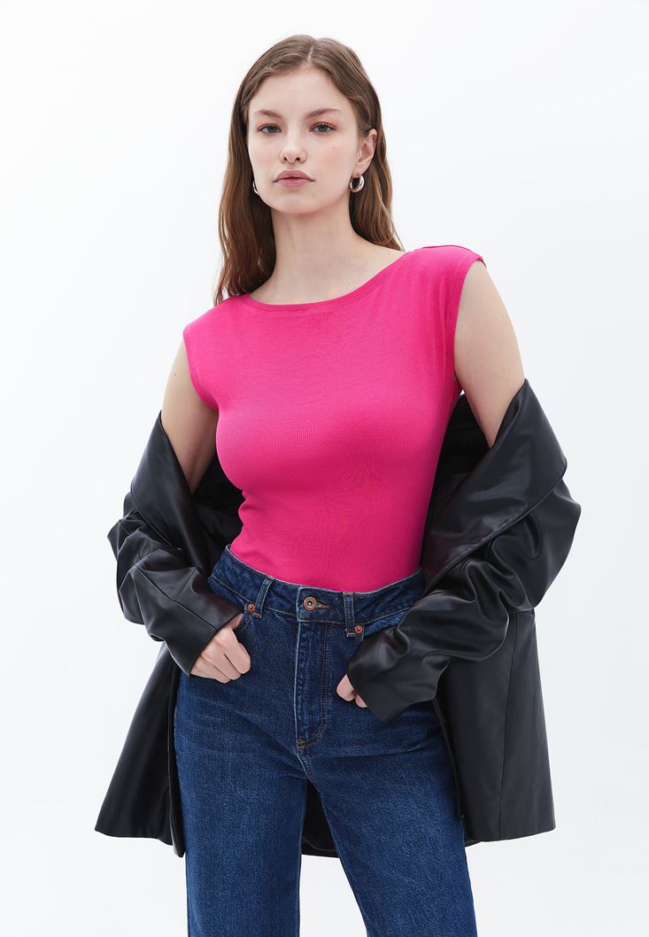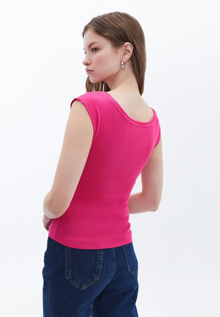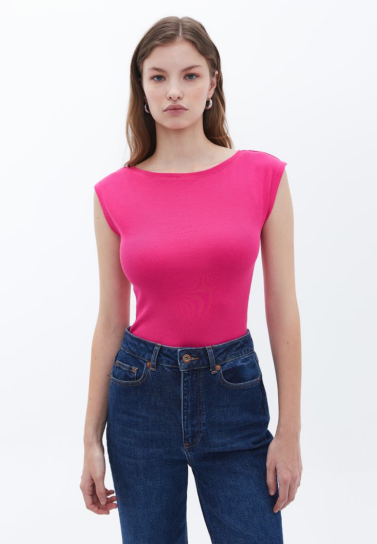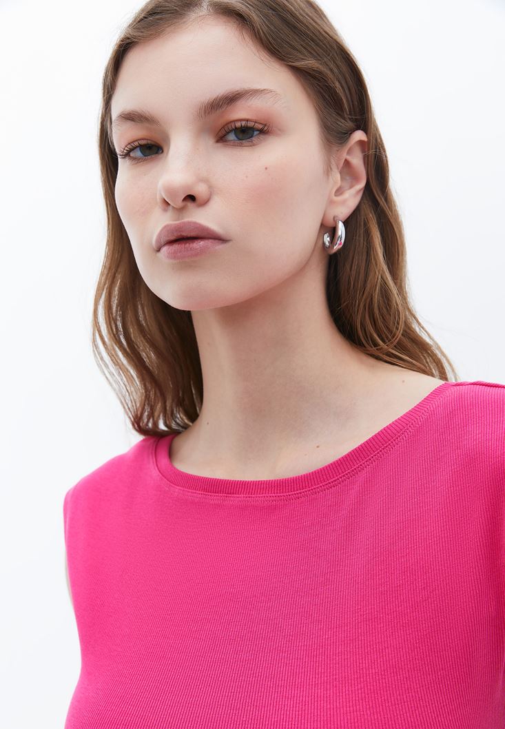 • Bayan Pembe Pamuklu Bot Yaka Tişört