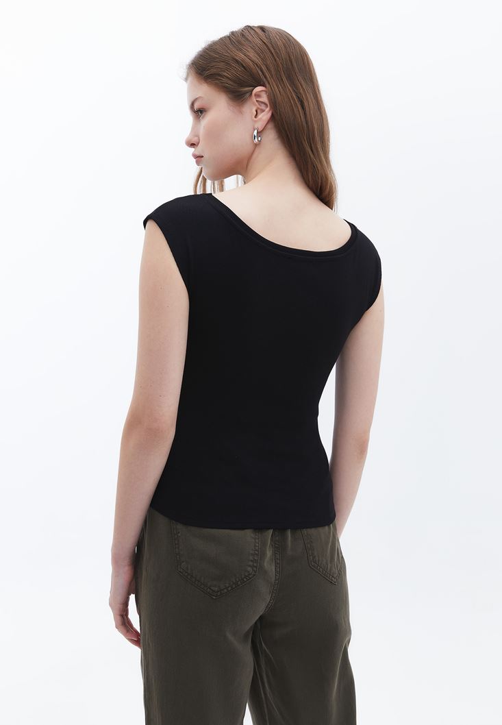 • Bayan Siyah Pamuklu Bot Yaka Tişört