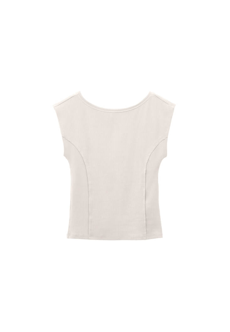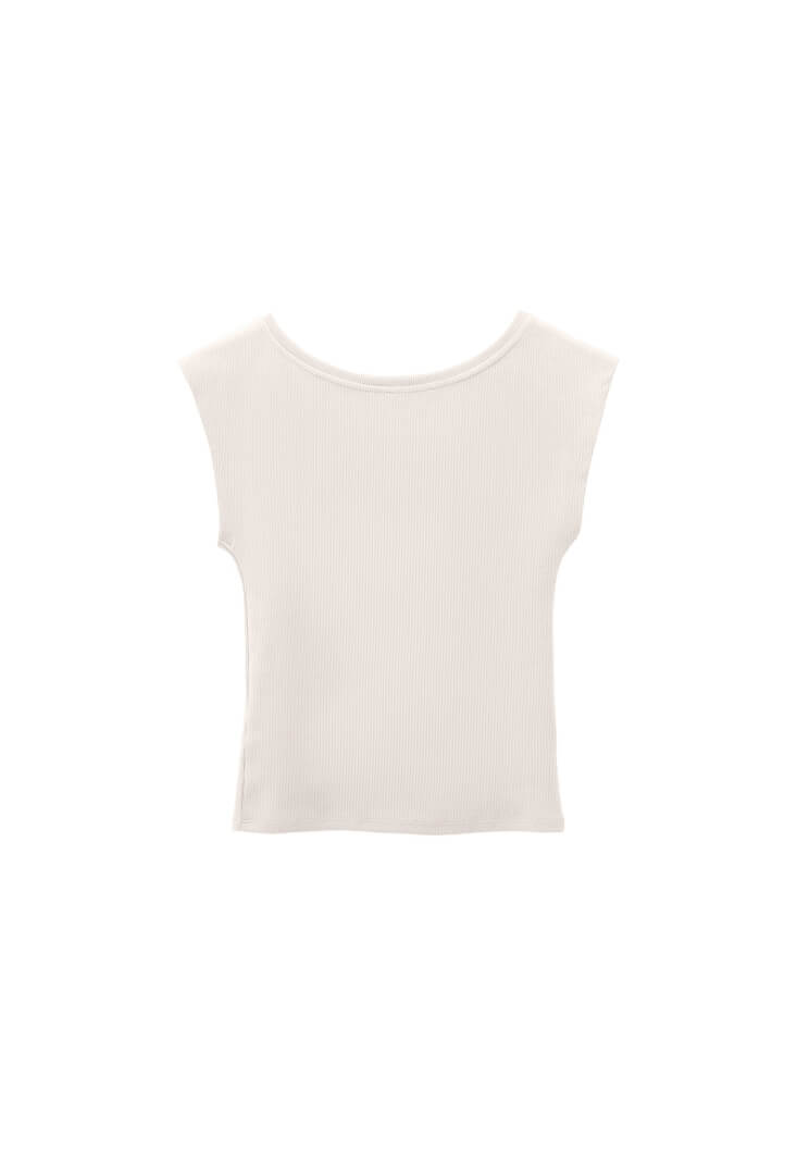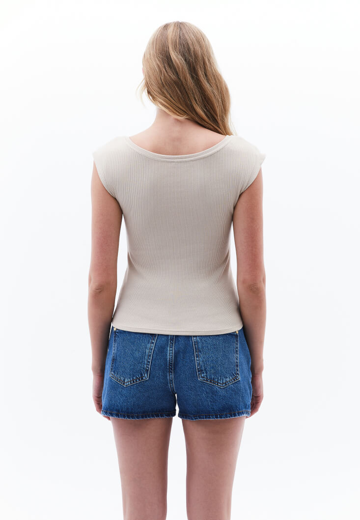 • Bayan Bej Pamuklu Bot Yaka Tişört