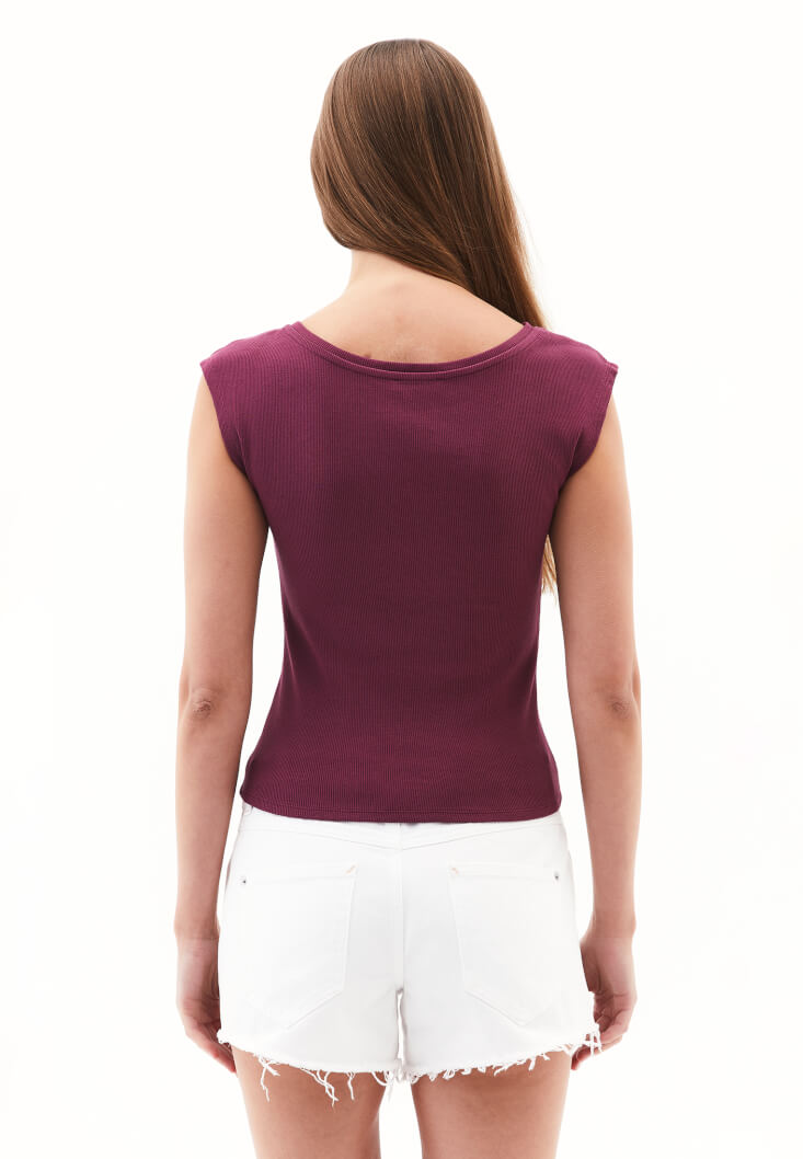 • Bayan Mor Pamuklu Bot Yaka Tişört