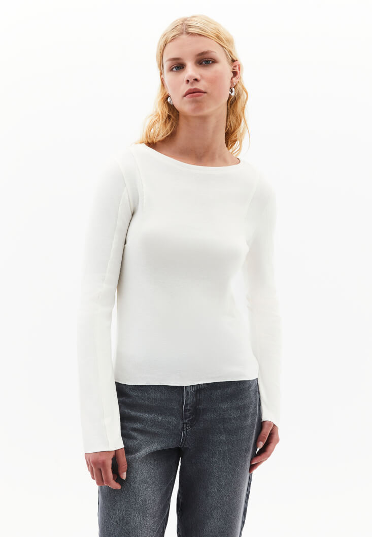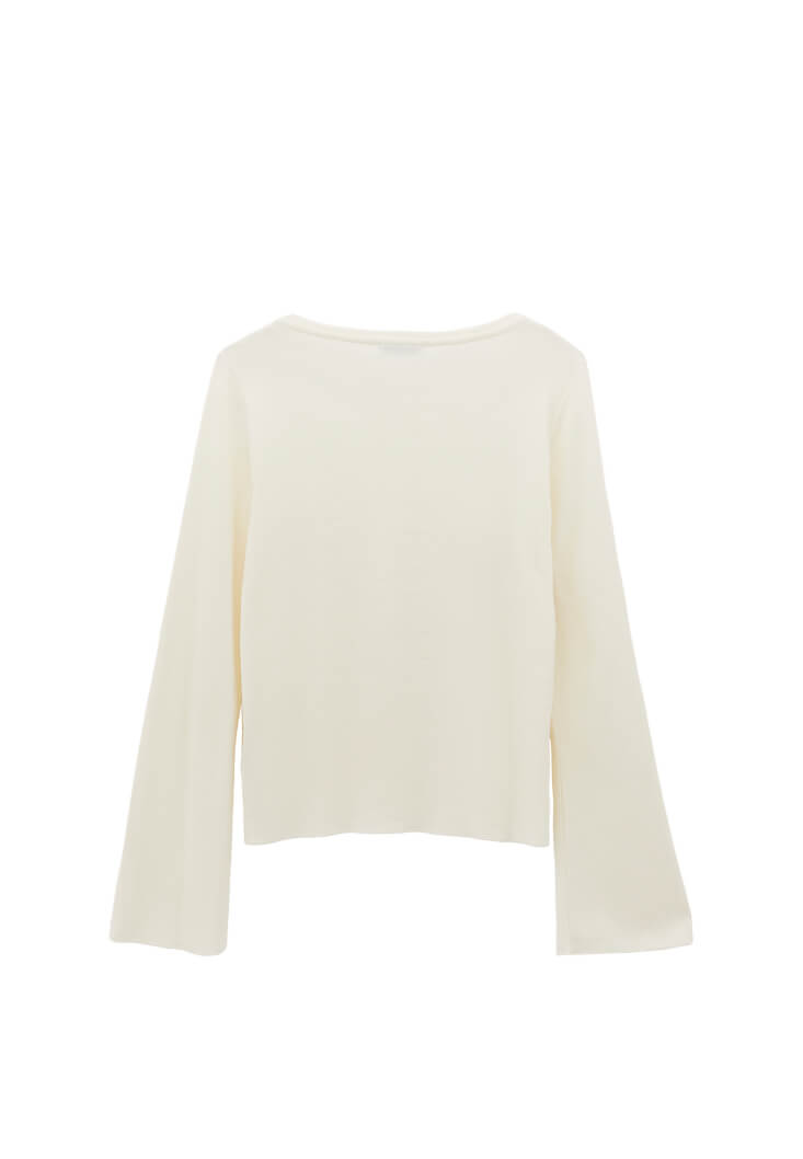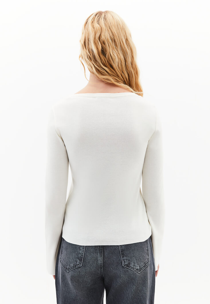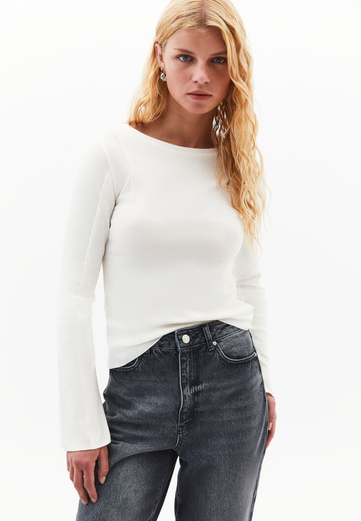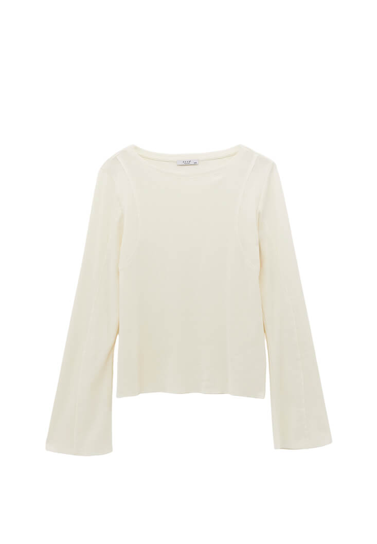 • Bayan Krem Pamuklu Bot Yaka Tişört