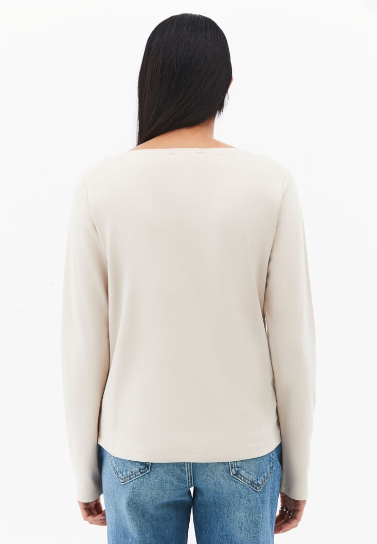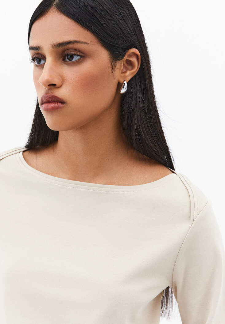 %100 pamuk içerikli doğal doku, bot yaka, uzun kollu, bedeni saran esnek fit.