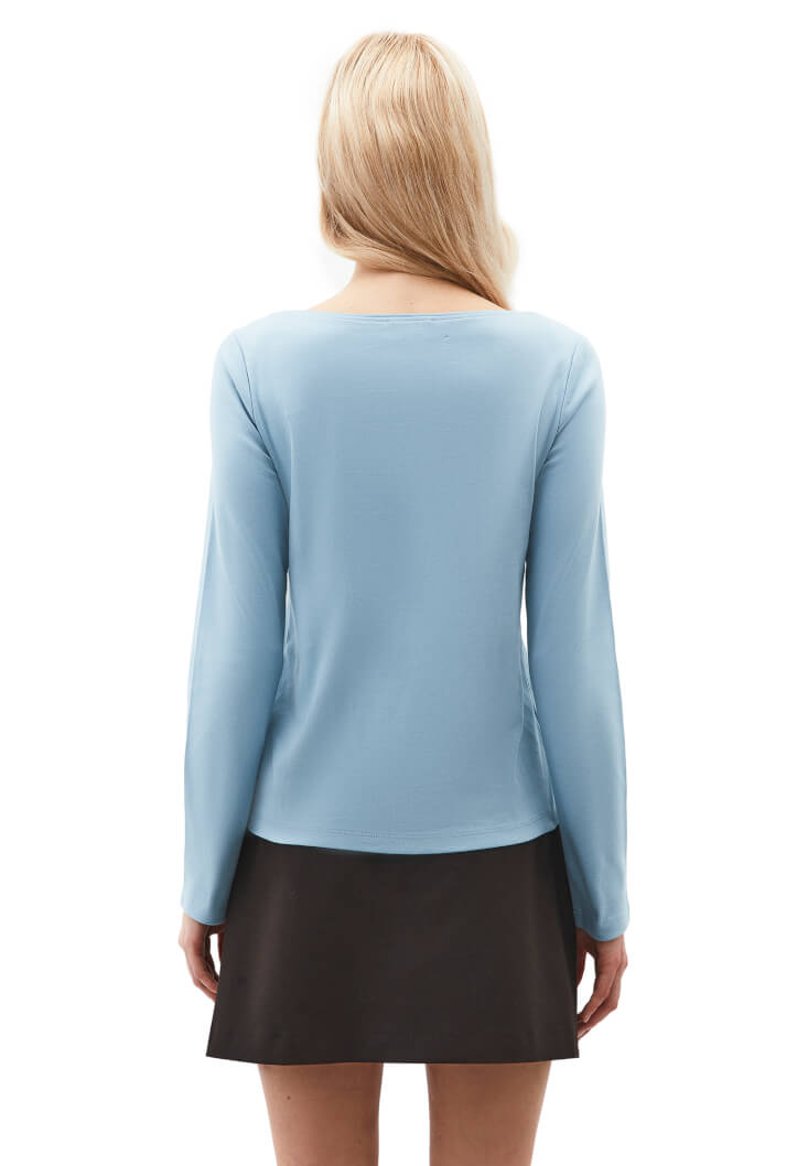 • Bayan Mavi Pamuklu Bot Yaka Tişört