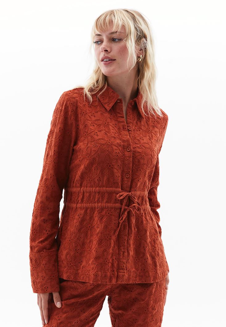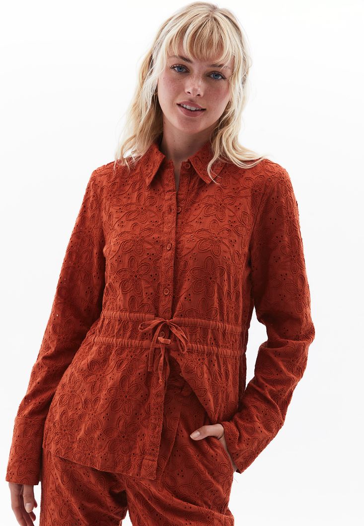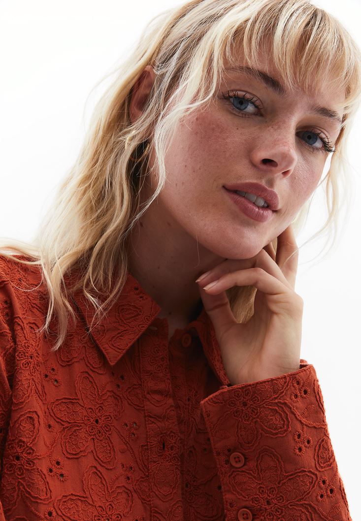 • Bayan Turuncu Pamuklu Brodeli Gömlek
