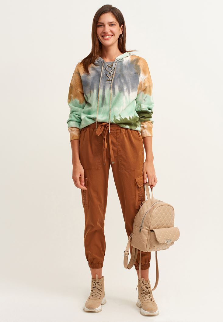 • Bayan Kahverengi Pamuklu Casual Jogger Pantolon