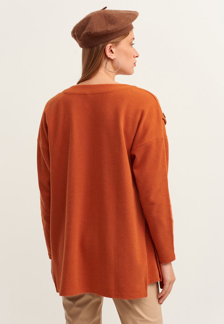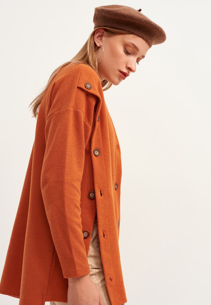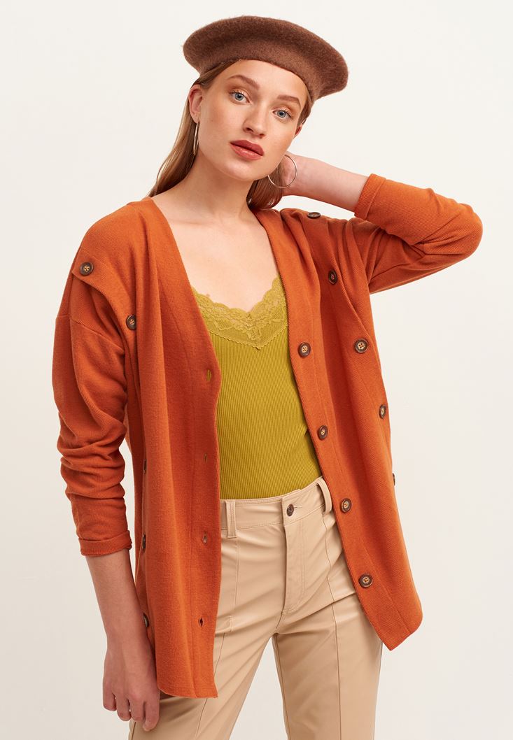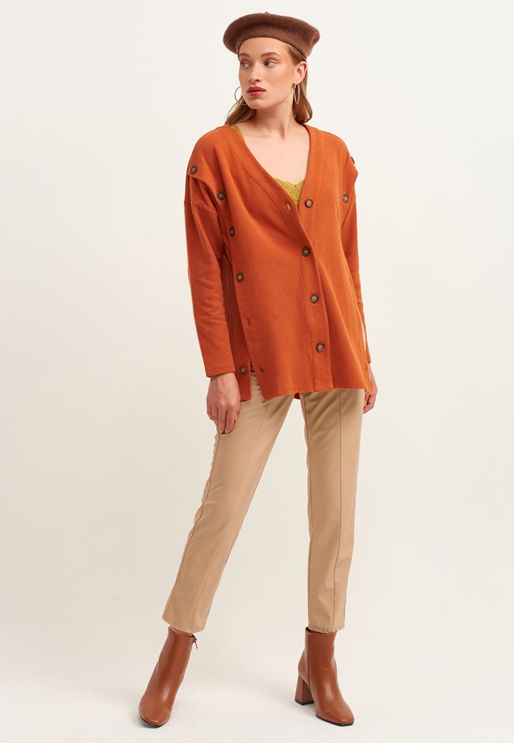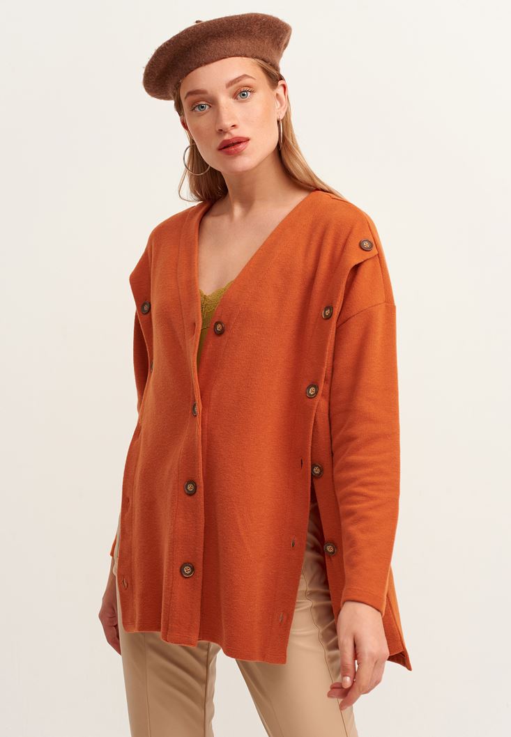 • Bayan Kahverengi Pamuklu Çok Düğmeli Hırka