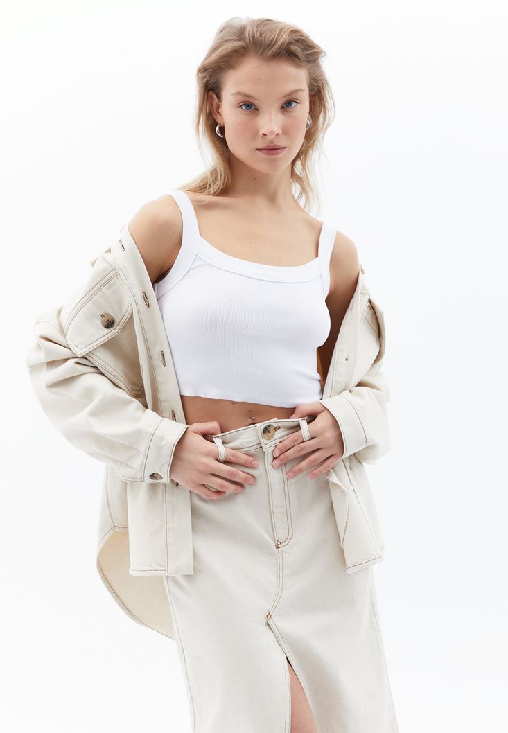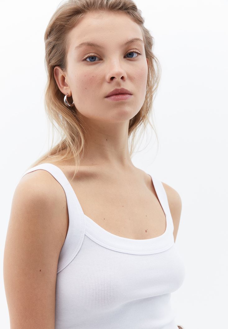 Beyaz Pamuklu Crop Atlet