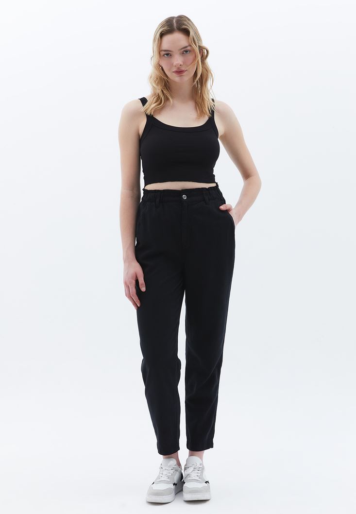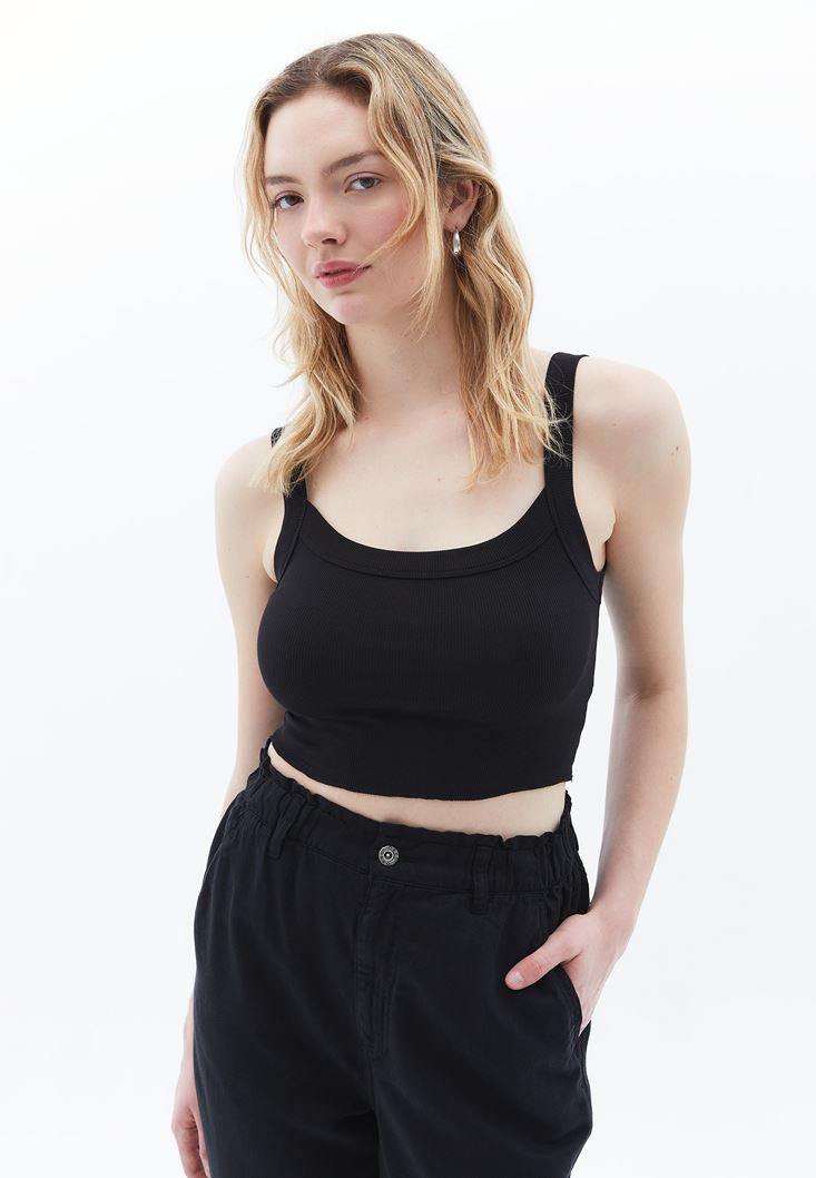 Siyah Pamuklu Crop Atlet