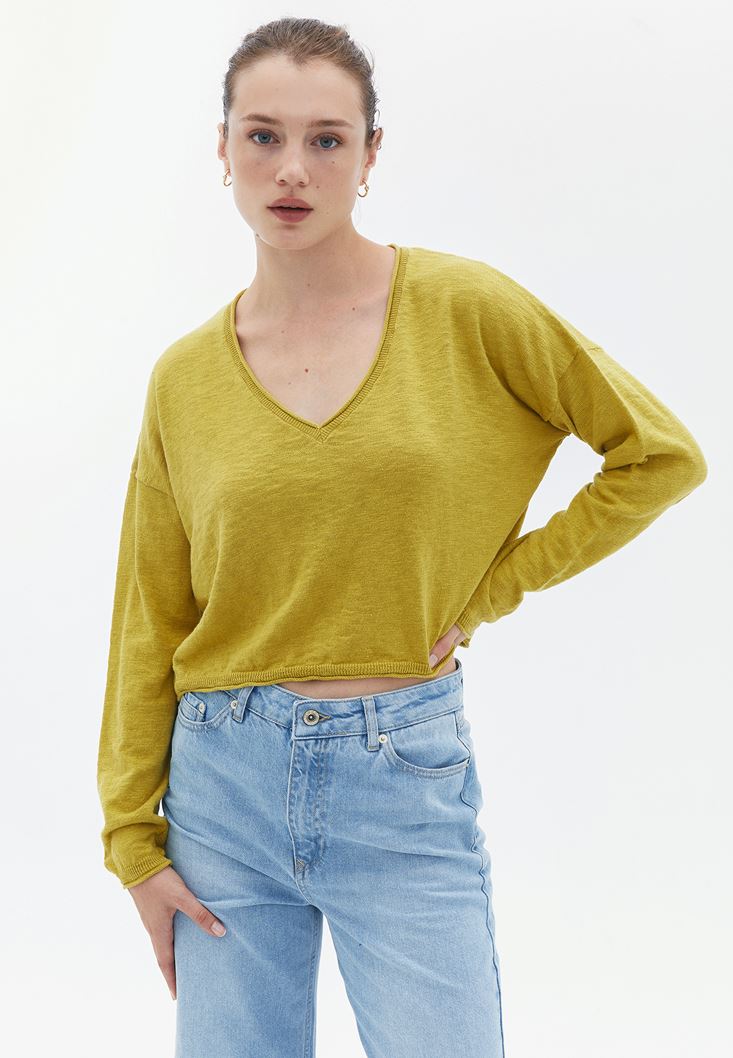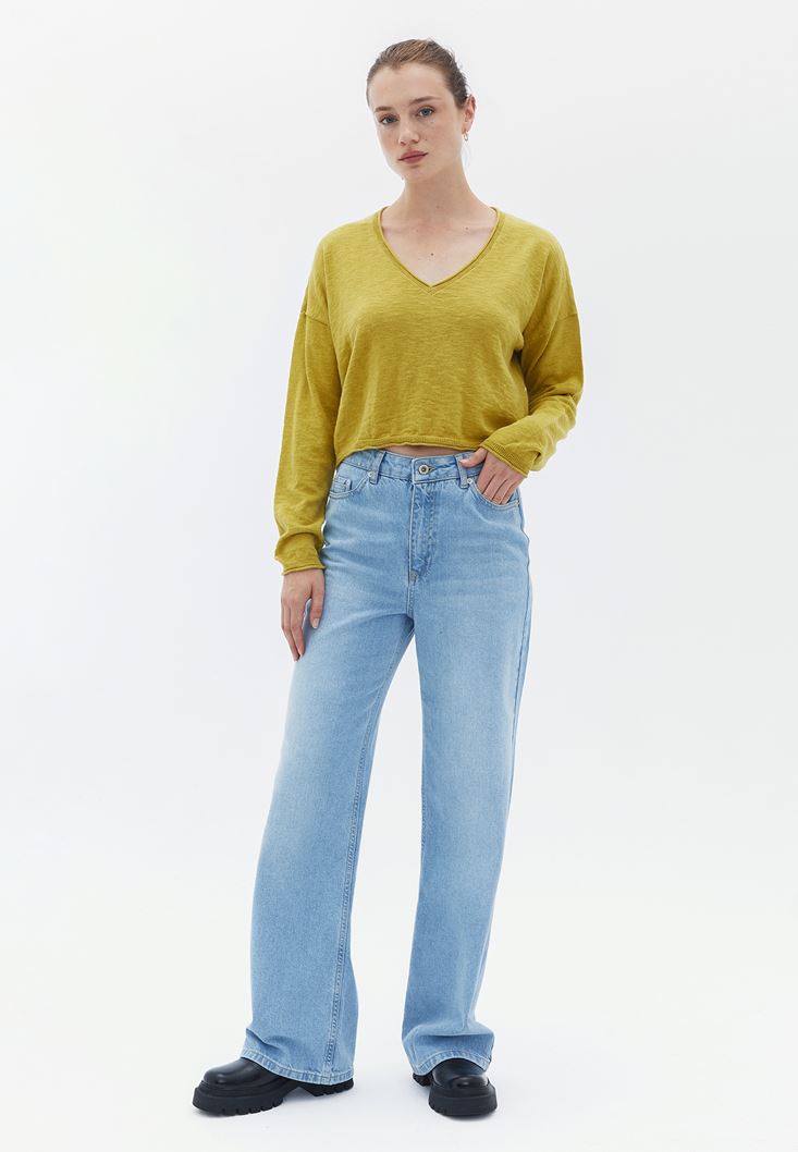 Pamuklu Crop Kazak ve Pantolon Kombini