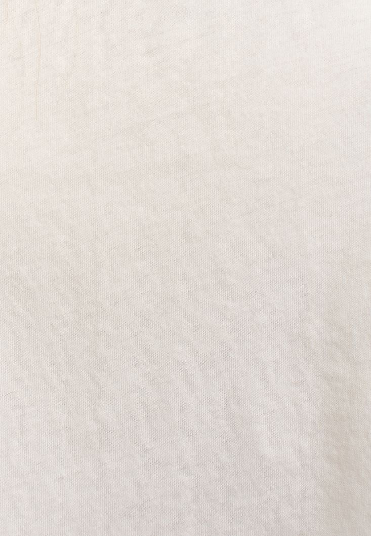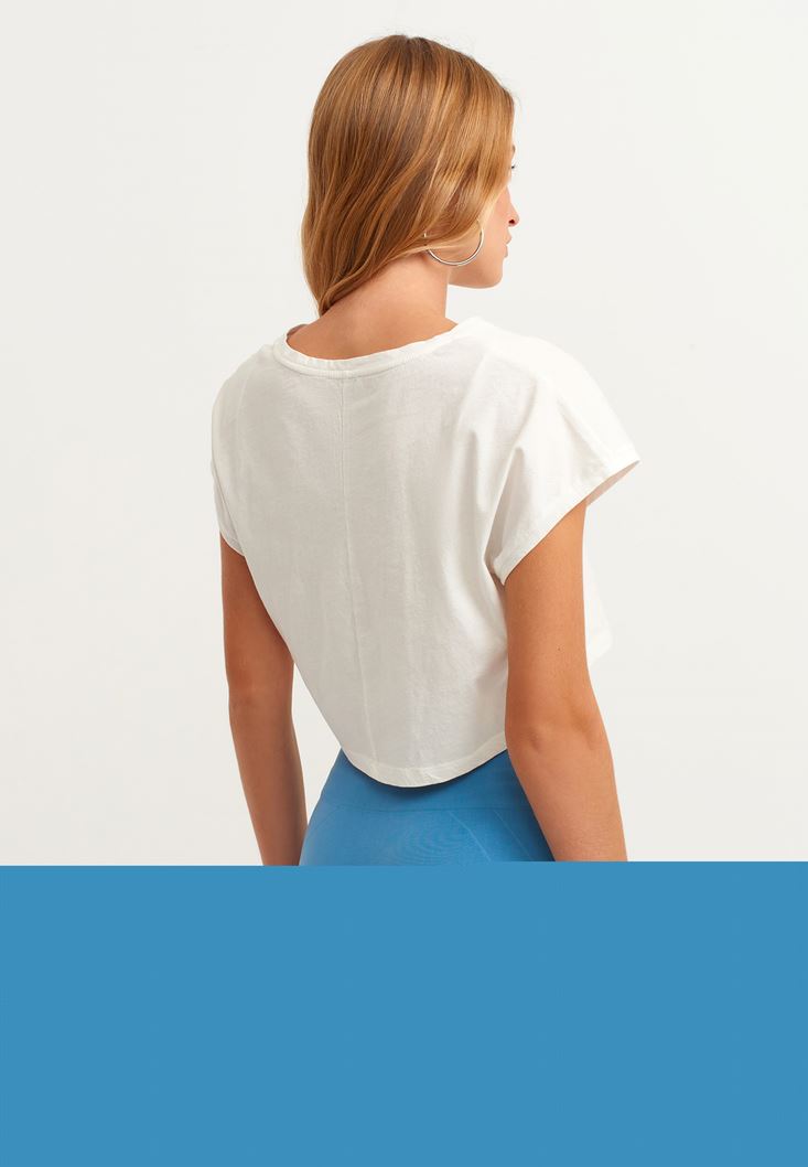 • Bayan Krem Pamuklu Crop Tişört