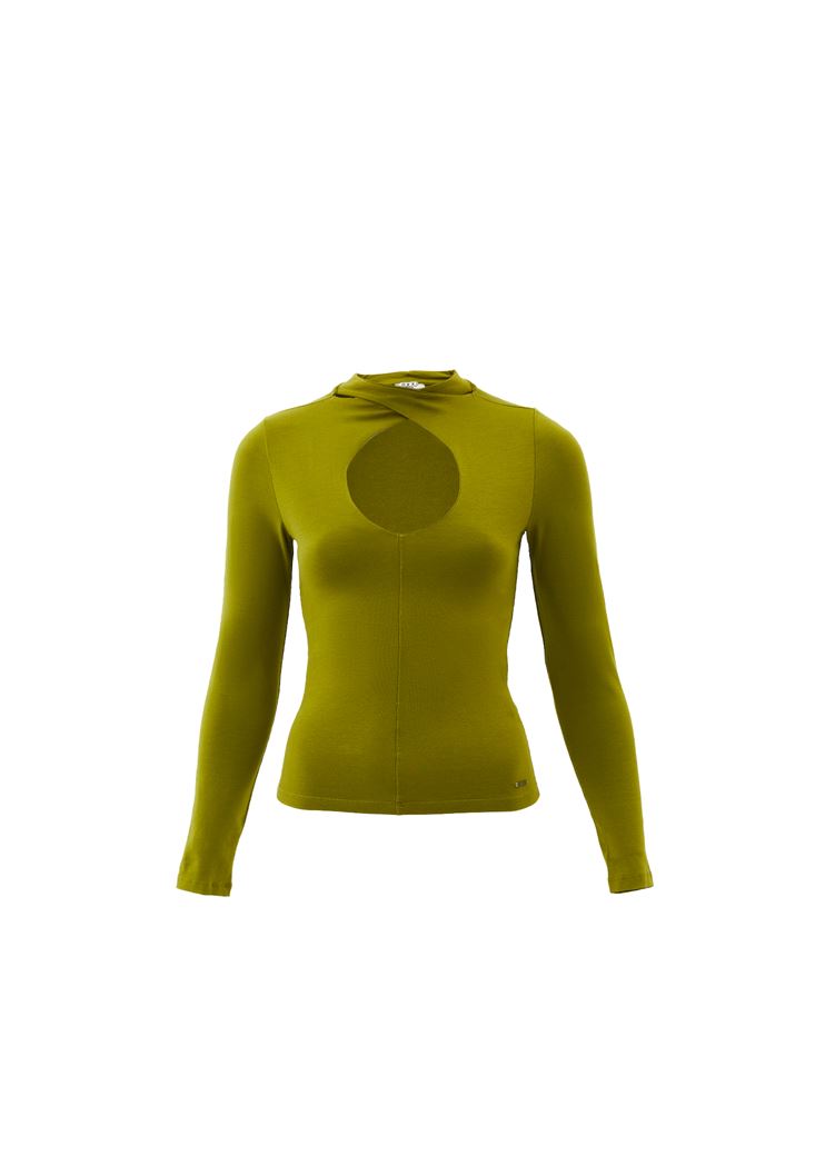 Pamuklu esnek doku, ön kısmı cut out detaylı, uzun kollu, bedeni saran fit.