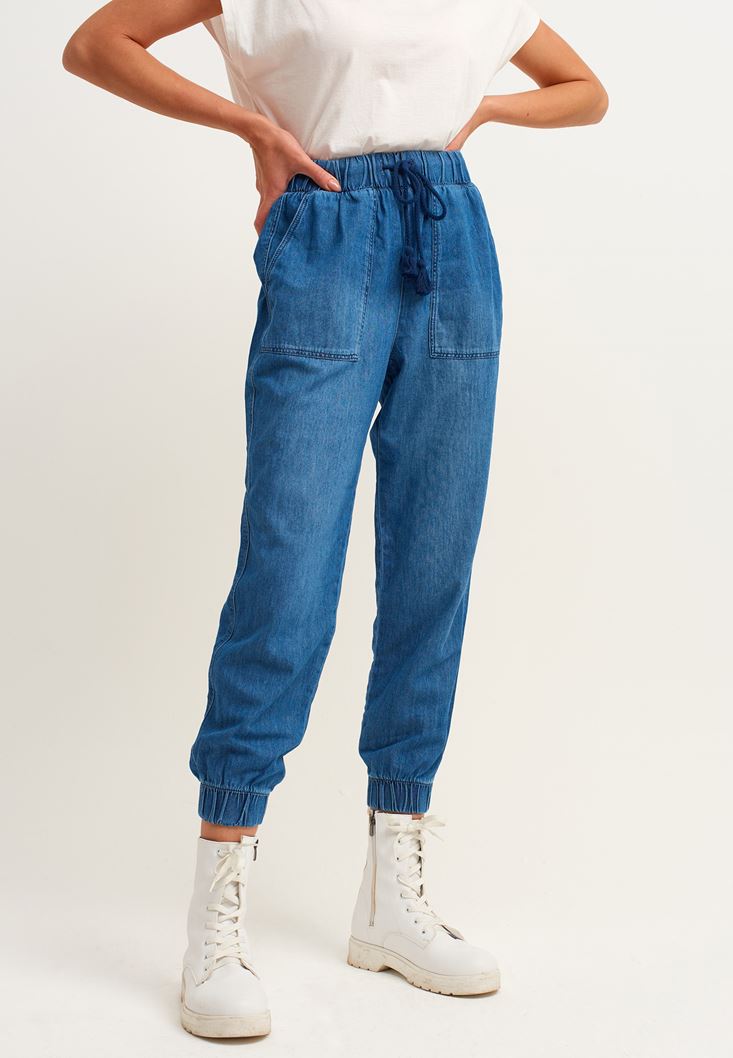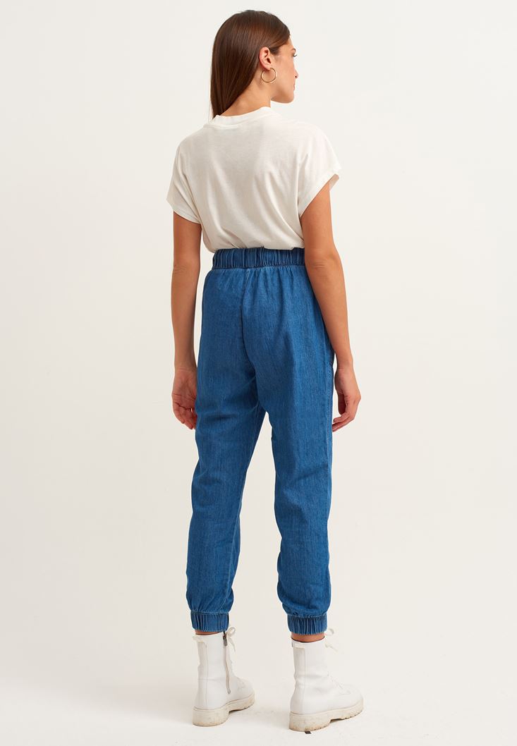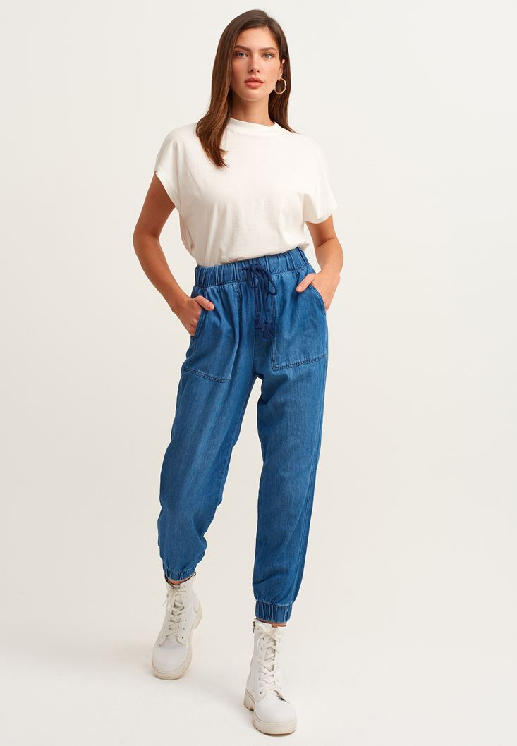 • Bayan Mavi Pamuklu Denim Jogger Pantolon