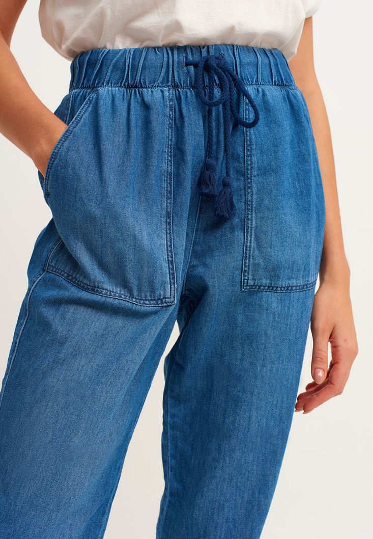 Pamuklu Denim Jogger Pantolon modeli. Aradığın havalı jogger için bu parça çok uygun! Vazgeçilmezler arasına eklenen bu jogger pantolon ile havalı ve rahat kombinler yapabilirsin. Açık havada güneşin tadını çıkarabileceğin keyifli vakitler için onu sneakerlarla bir araya getir... Doğal dokunun harika etkisini bu pantolon ile yakalaman mümkün, şimdi onunla tanış!
