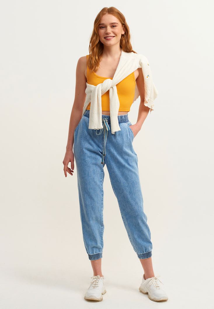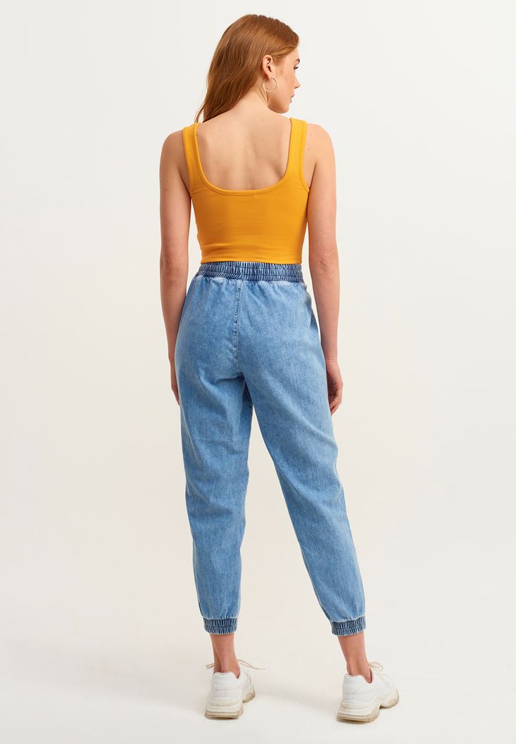 • Bayan Mavi Pamuklu Denim Jogger Pantolon