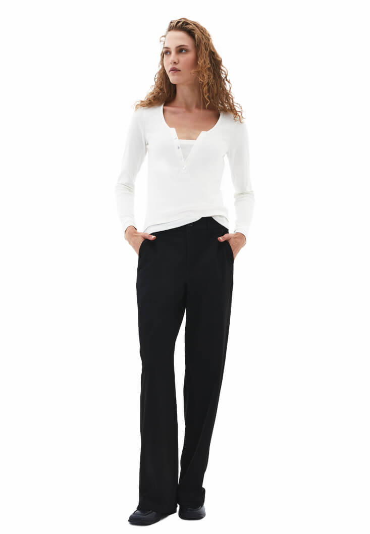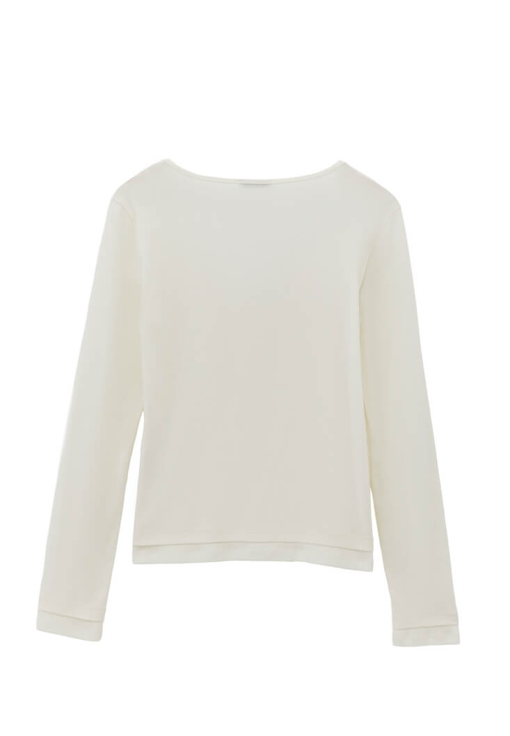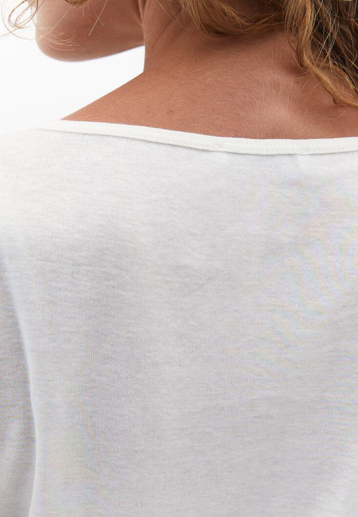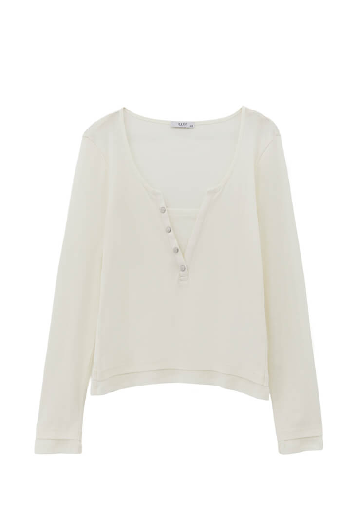 • Bayan Krem Pamuklu Düğme Detaylı Tişört