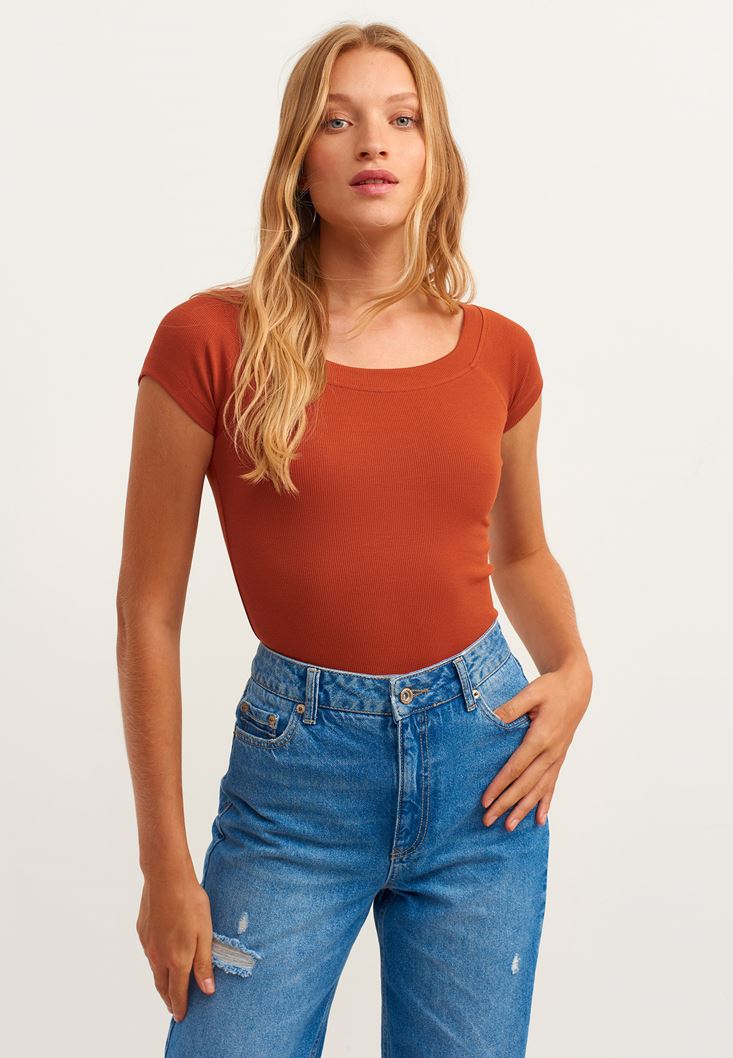 Fit: Bodycon / Yaka: Boot Neck / Kol: Short Sleeve