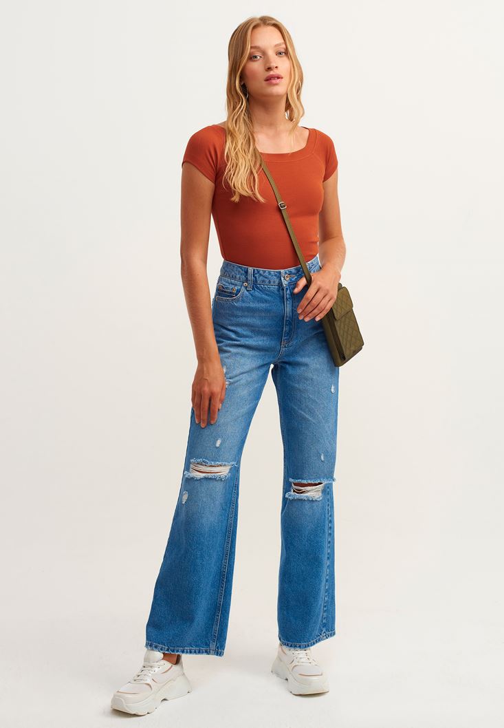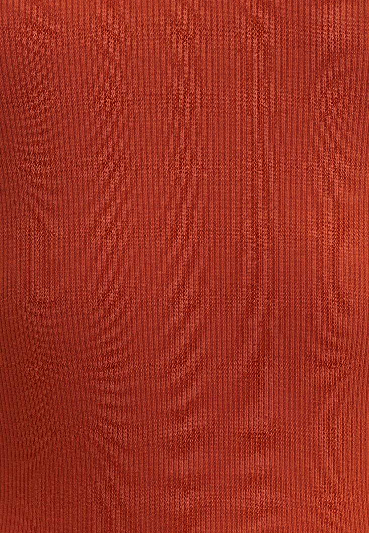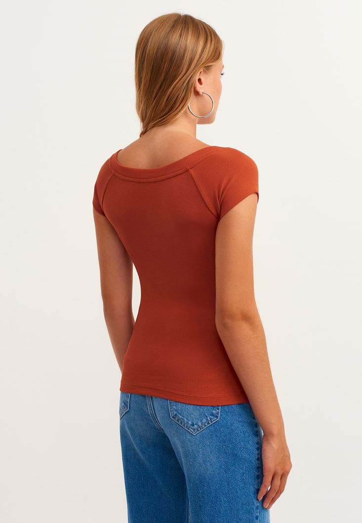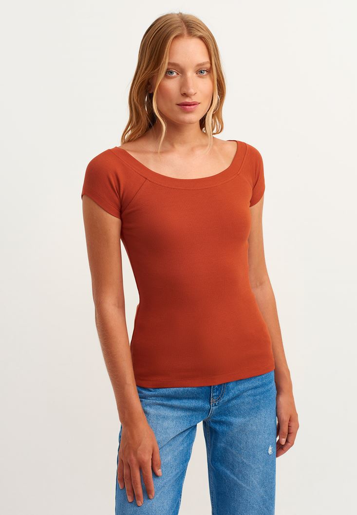 • Bayan Kiremit Pamuklu Esnek Dokulu Tişört