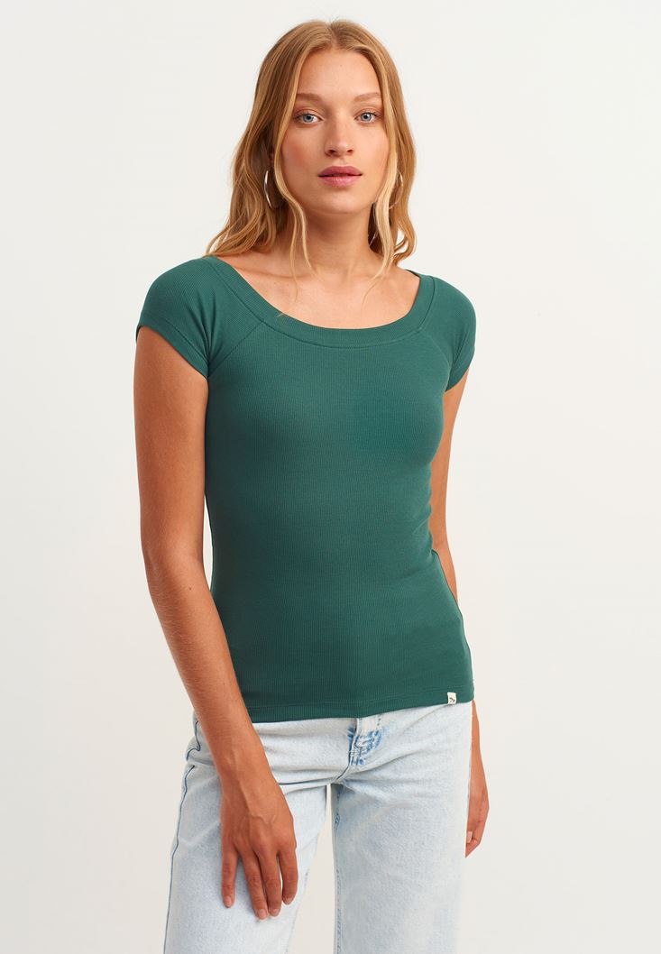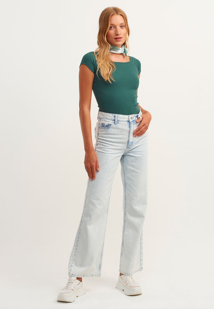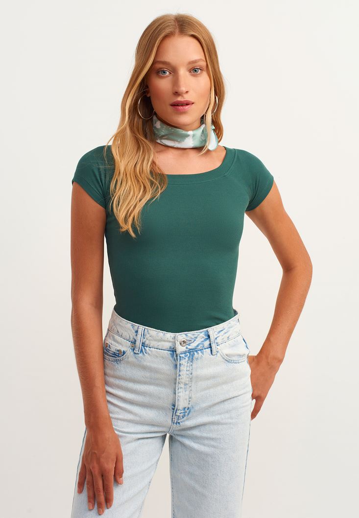 • Bayan Yeşil Pamuklu Esnek Dokulu Tişört