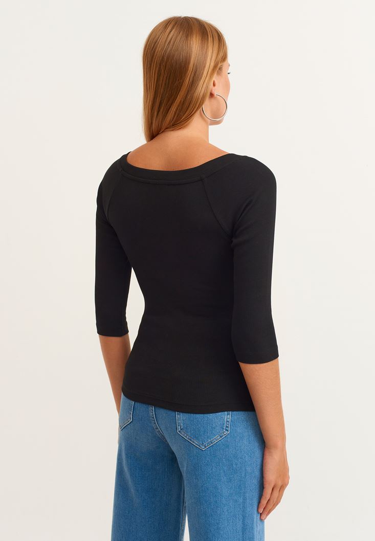 • Bayan Siyah Pamuklu Esnek Dokulu Tişört