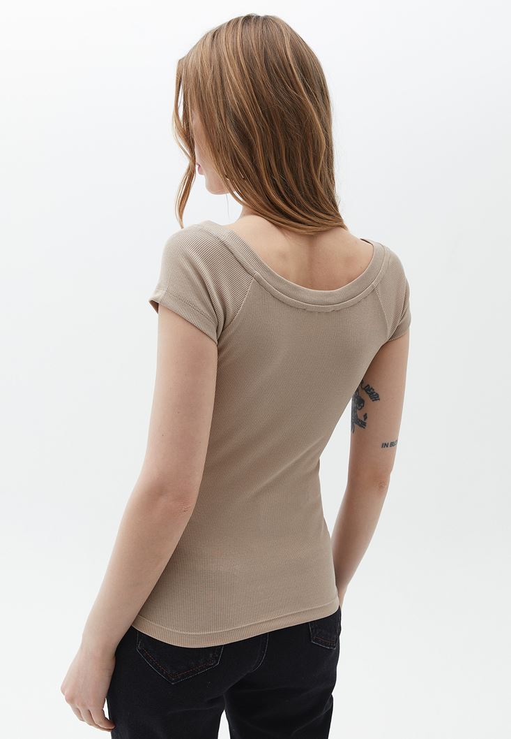 • Bayan Bej Pamuklu Esnek Dokulu Tişört